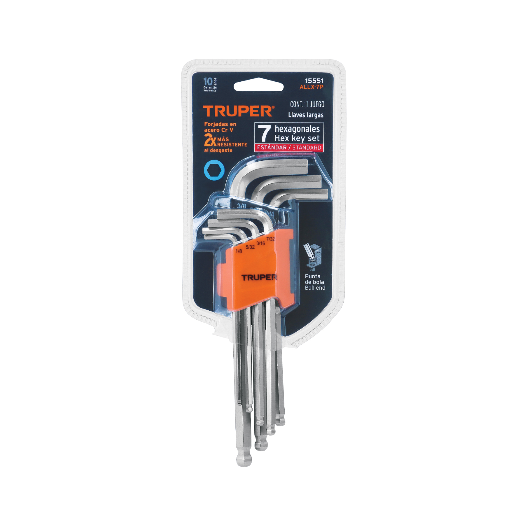 Juego 7 llaves allen largas std punta bola con organizador