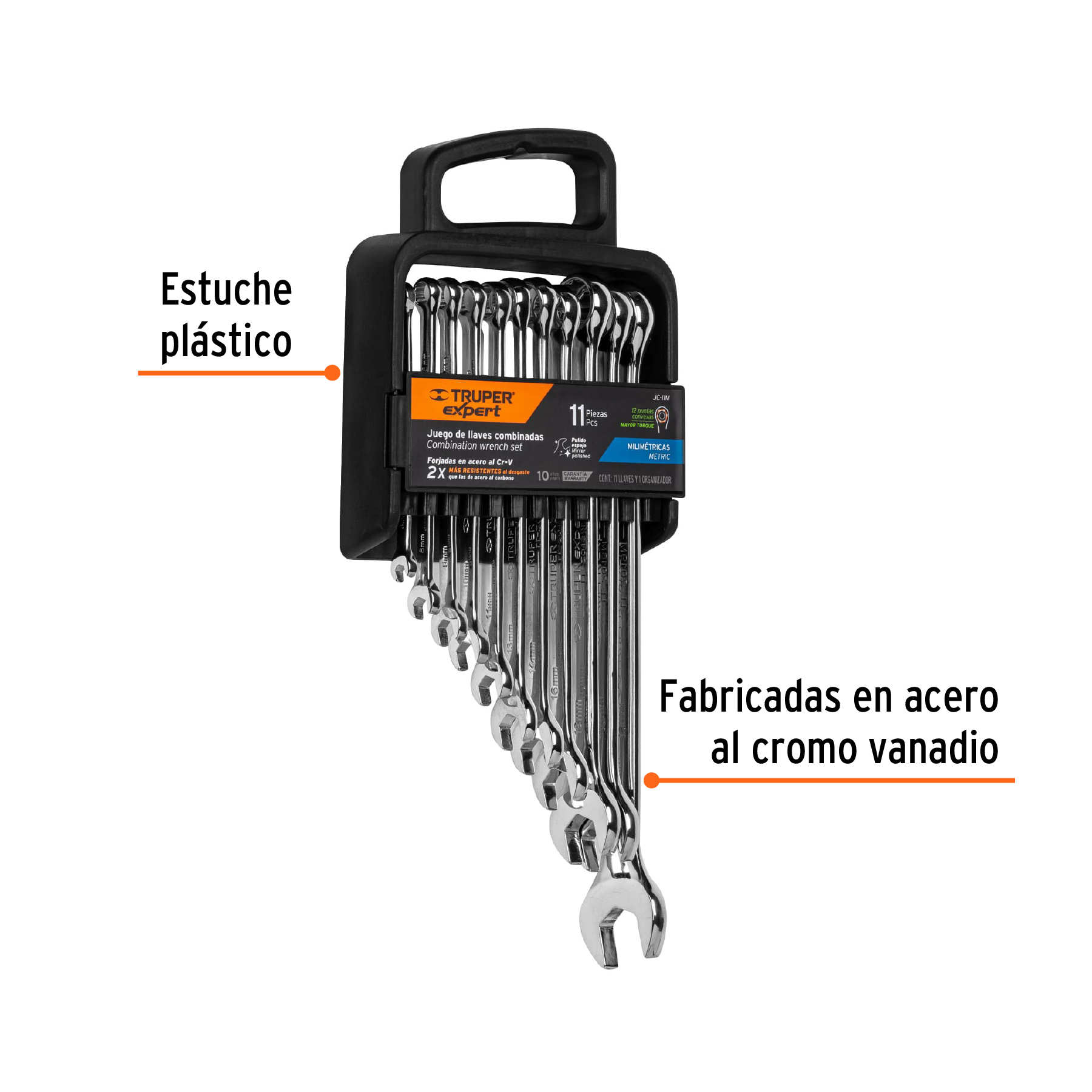 Juego de 11 llaves combinadas extralargas pulidas mm, EXPERT