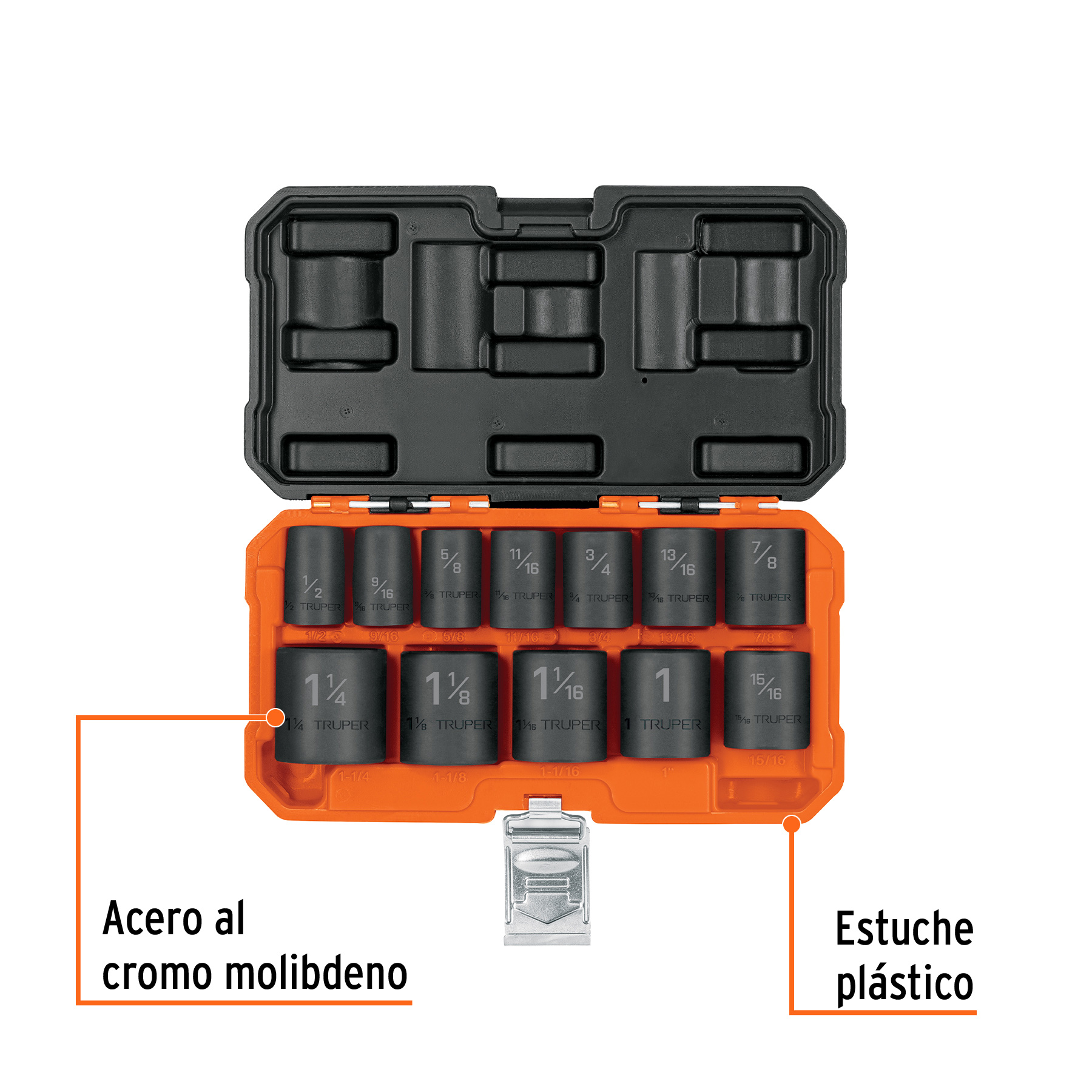 Juego de 12 dados cuadro 1/2′ de impacto 6 puntas std
