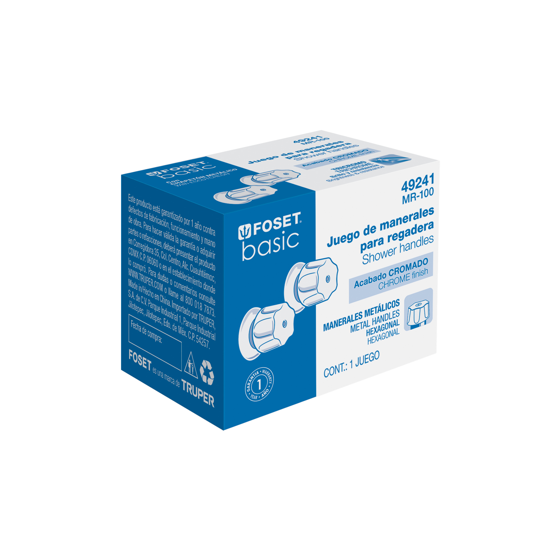 Juego de 2 manerales hex. metálicos para regadera, Basic