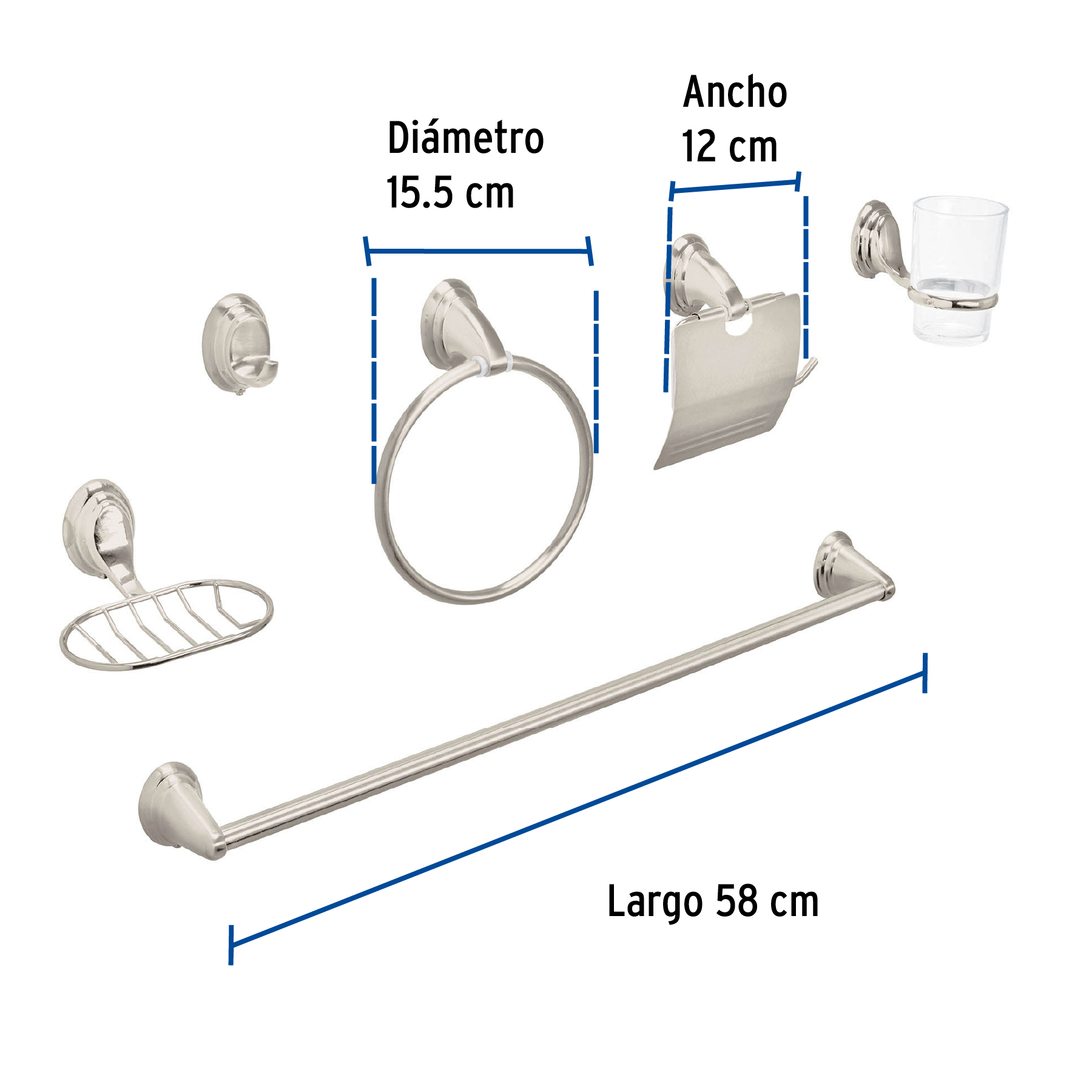 Juego de 6 accesorios p/baño satín chapetón ovalado, Aqua