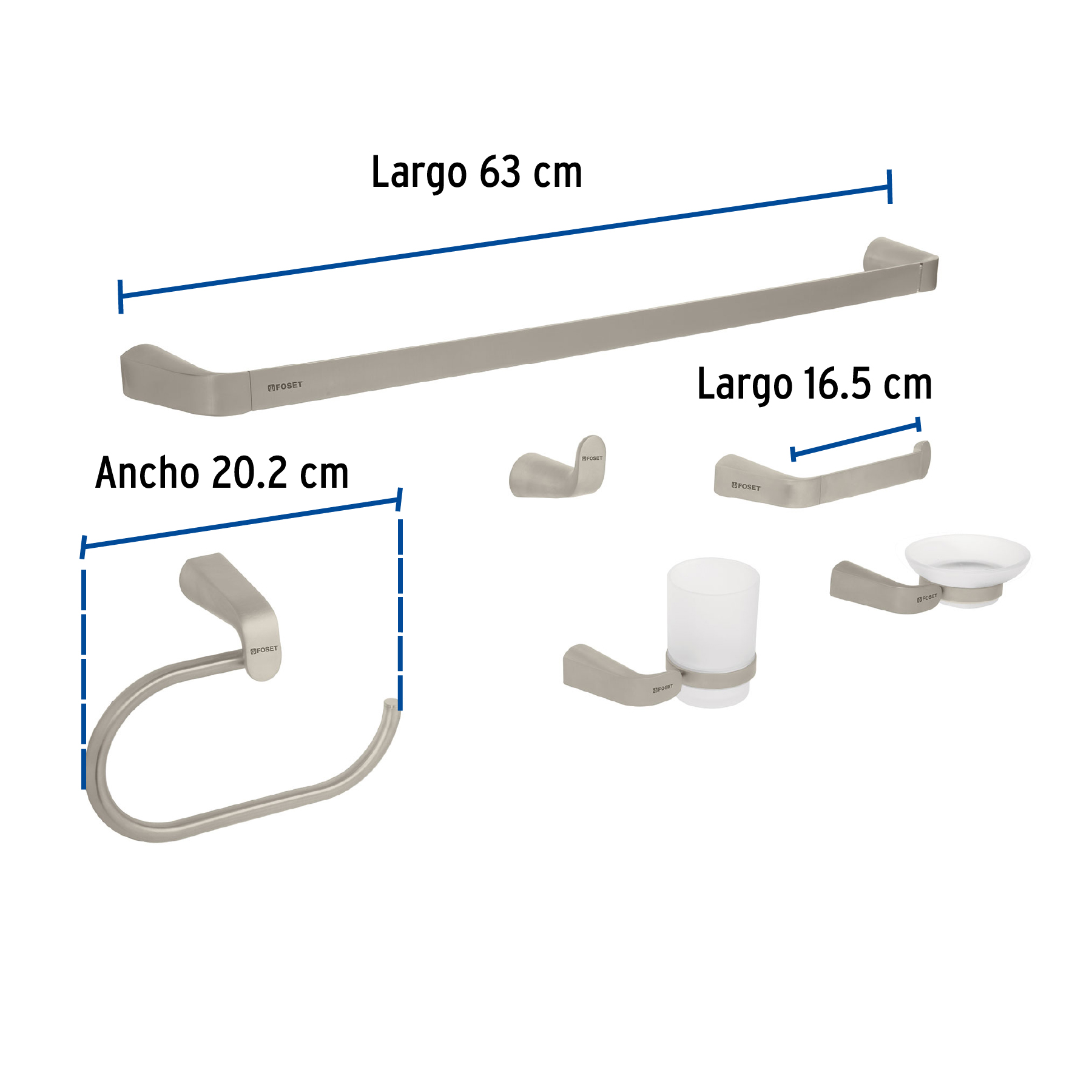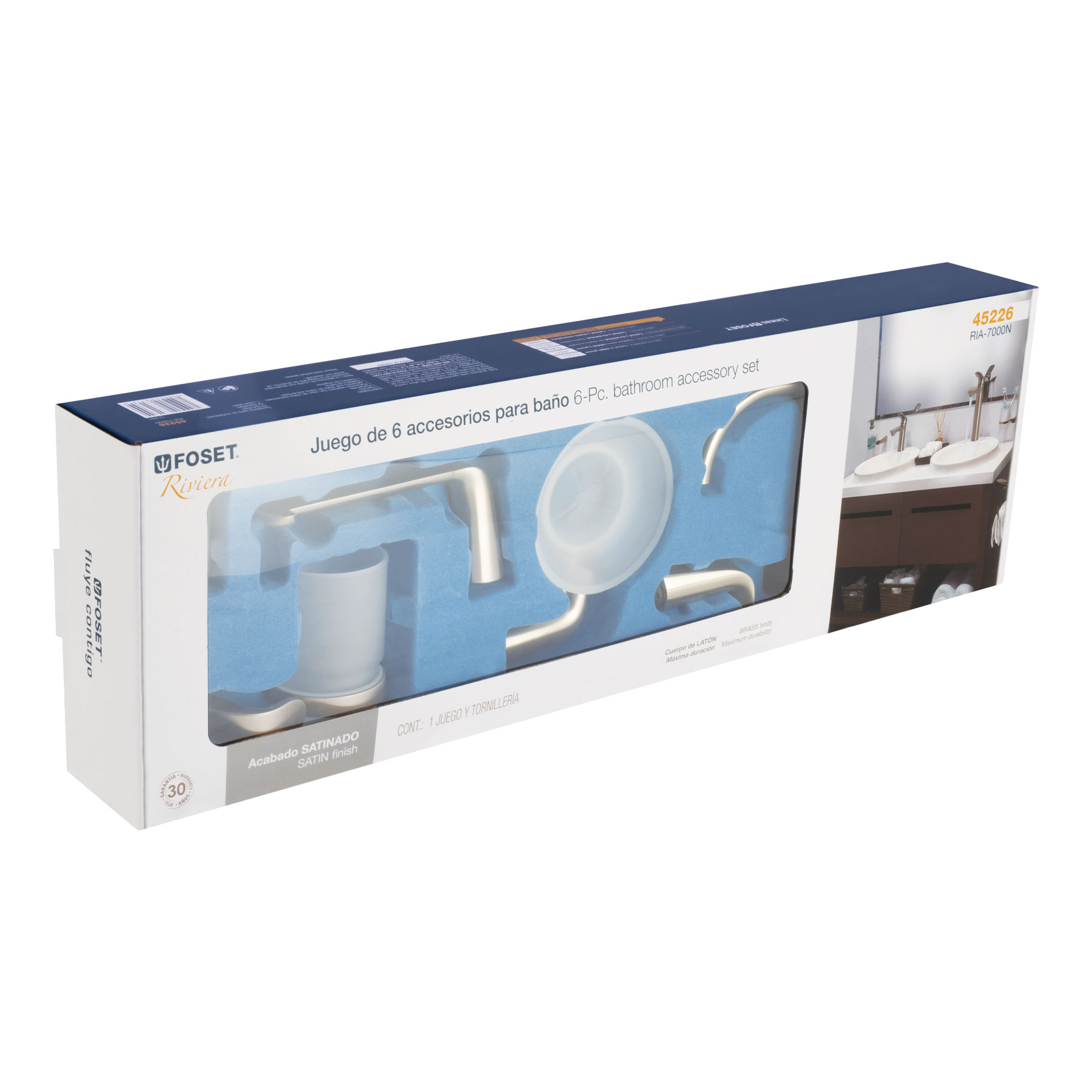 Juego de 6 accesorios para baño acabado satín, Riviera