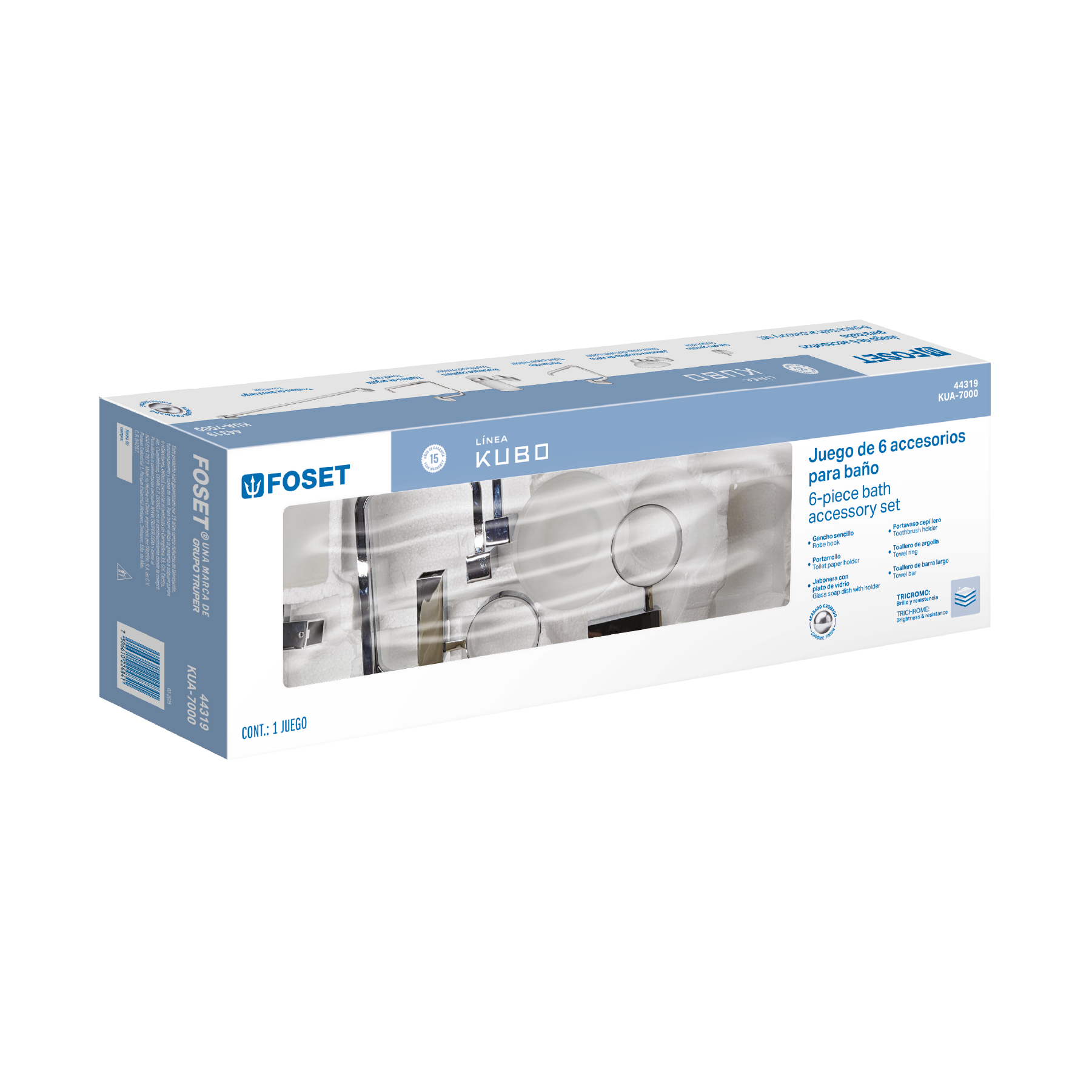 Juego de 6 accesorios para baño, cromo, FOSET KUBO