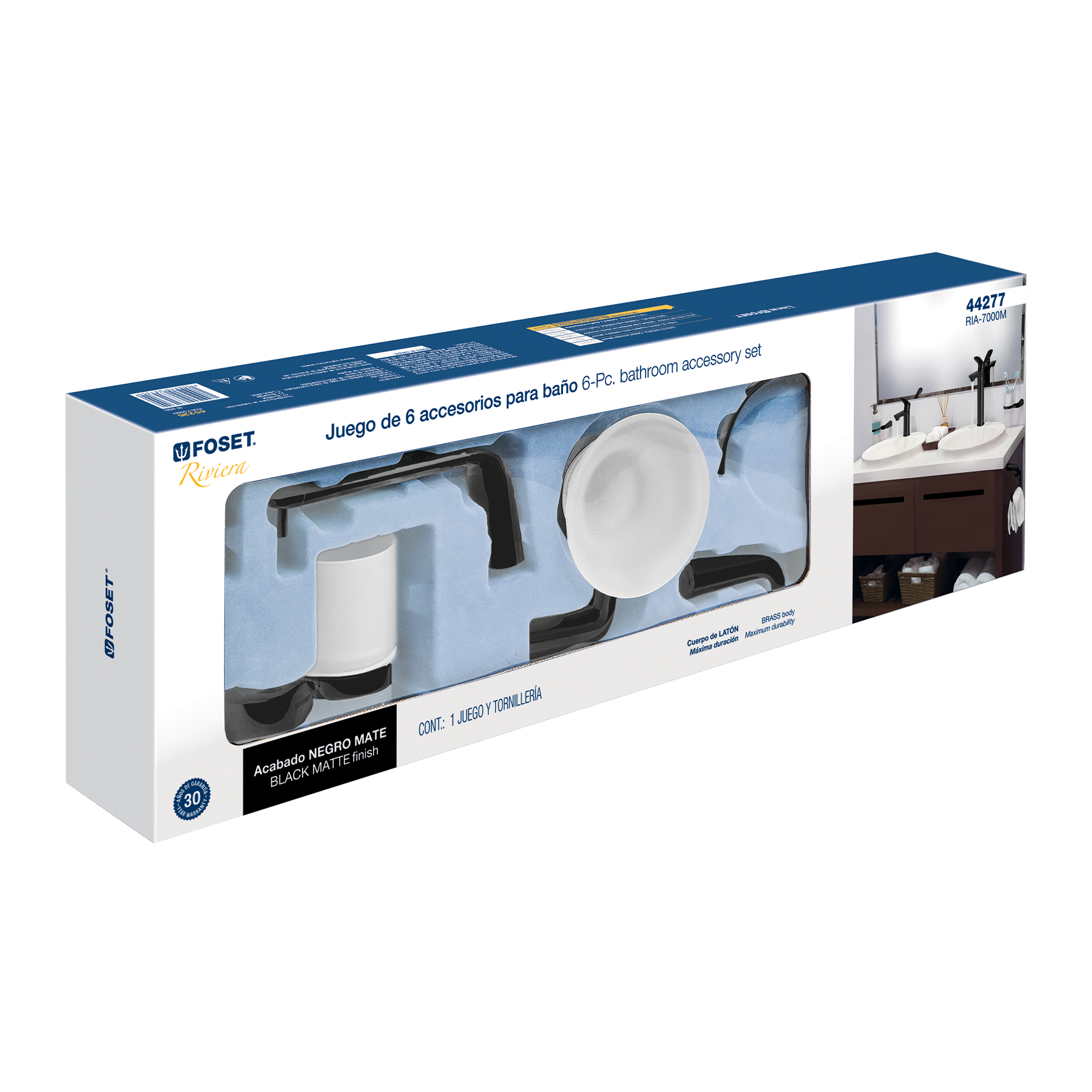 Juego de 6 accesorios para baño, negro, FOSET RIVIERA