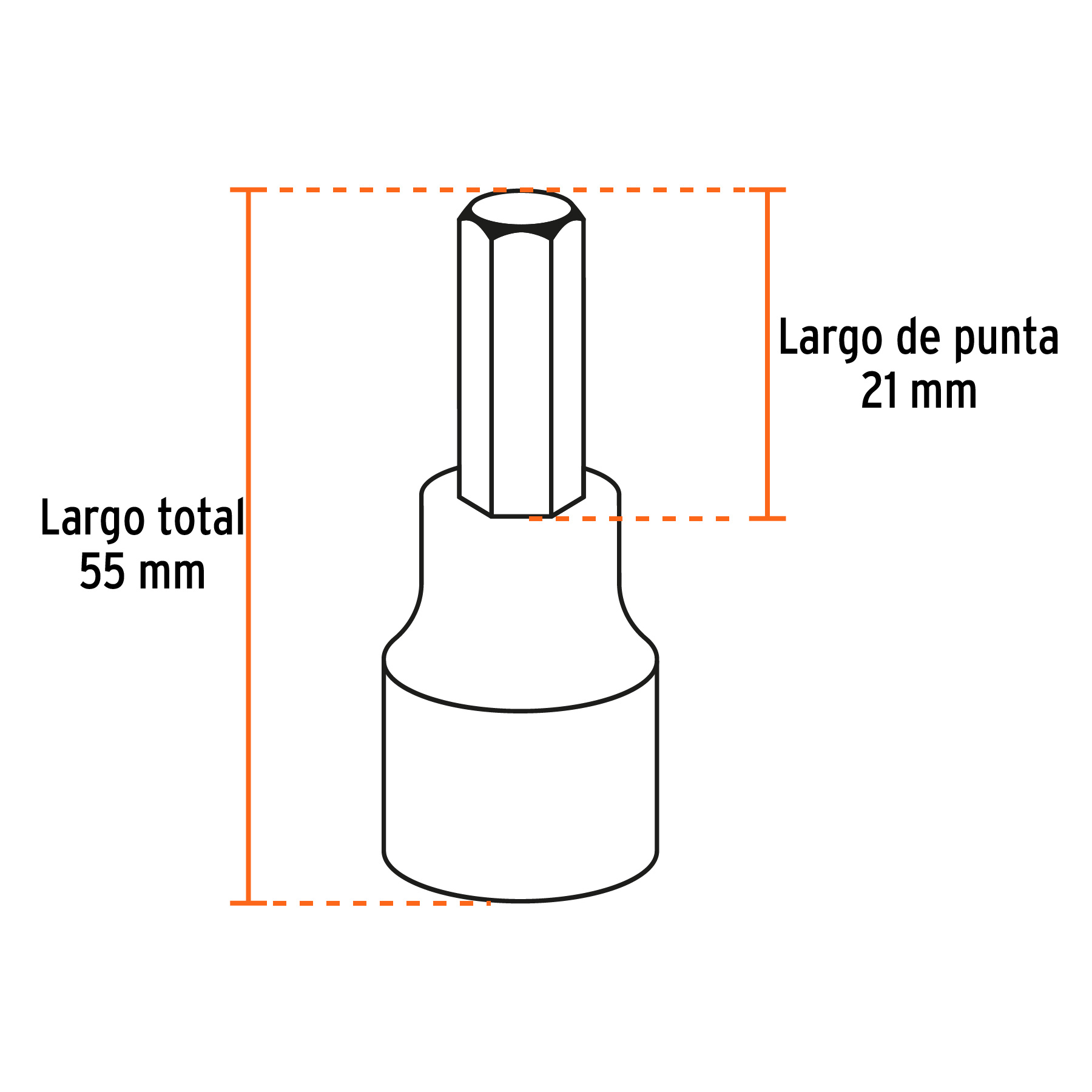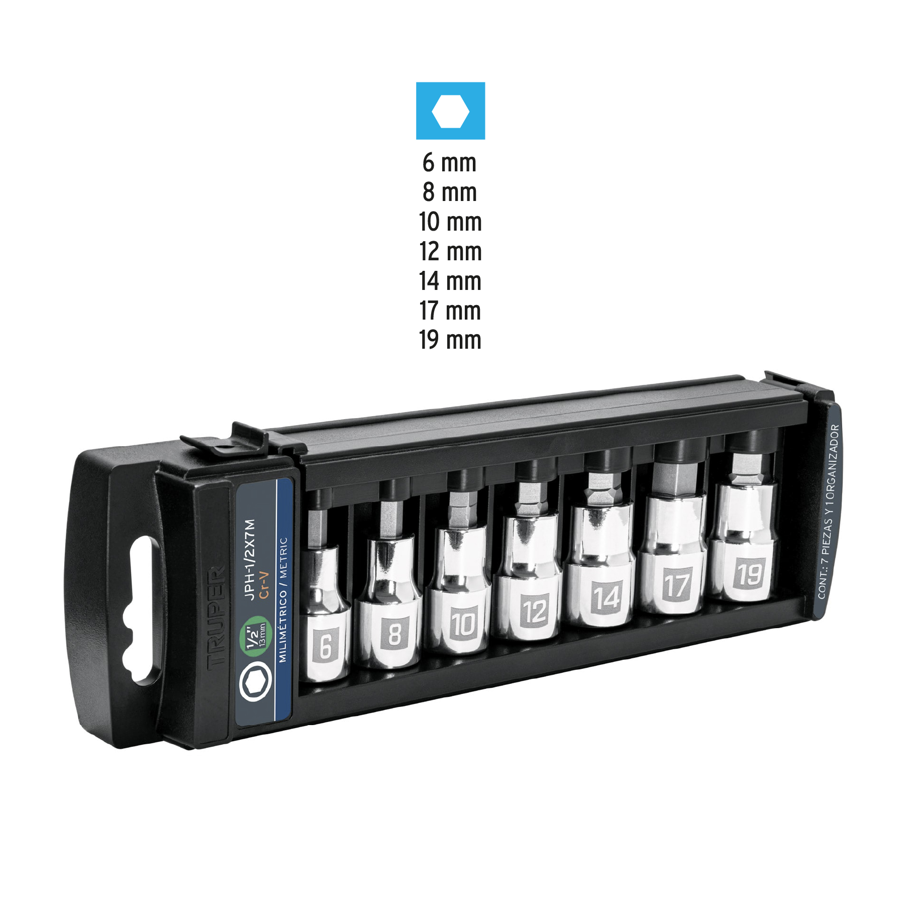 Juego de 7 dados cuadro 1/2′ punta hexagonal mm, Truper