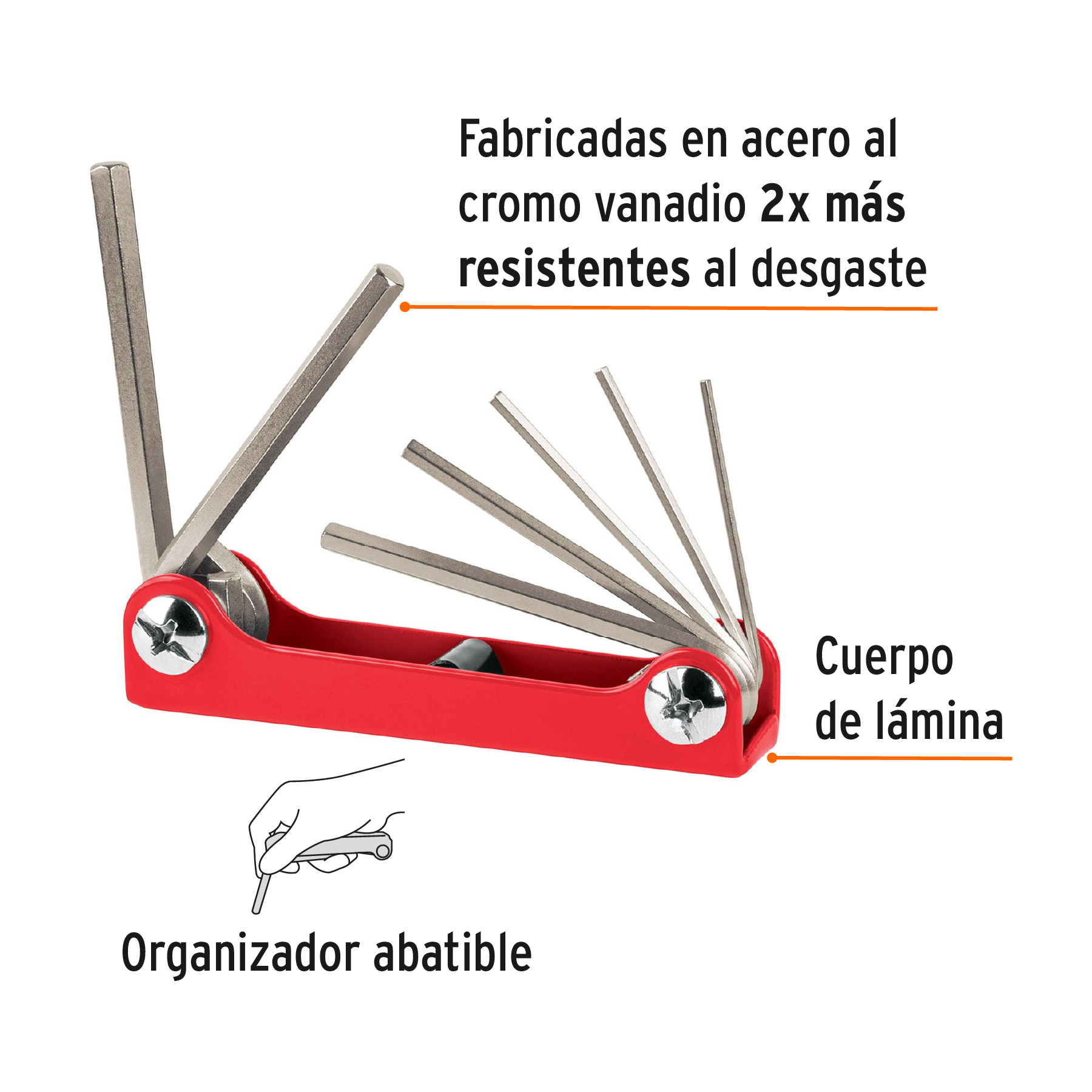 Juego de 7 llaves allen std tipo navaja, cuerpo de lámina