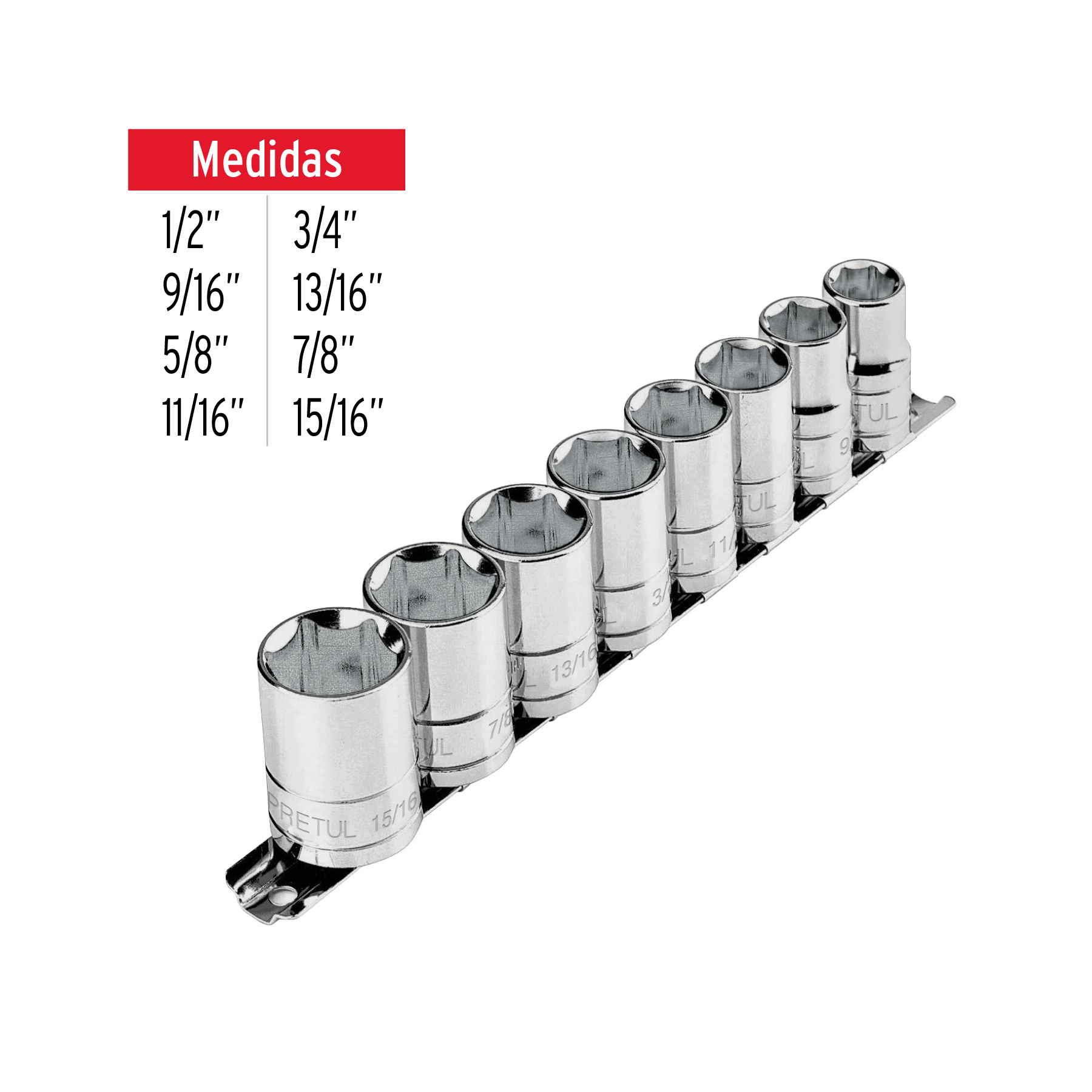 Juego de 8 dados cuadro 1/2′ std, Pretul