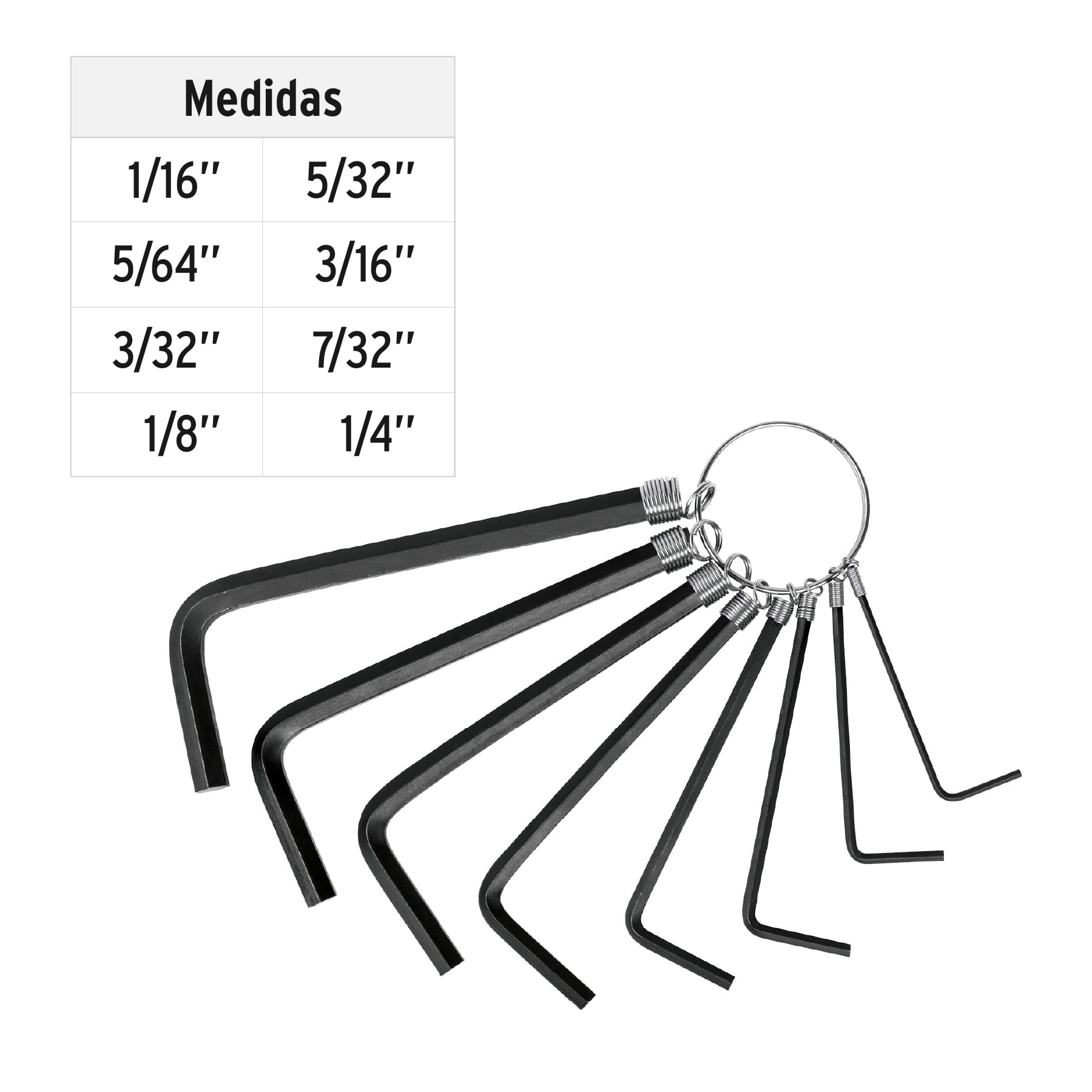 Juego de 8 llaves allen std tipo llavero, punta hex, PRETUL
