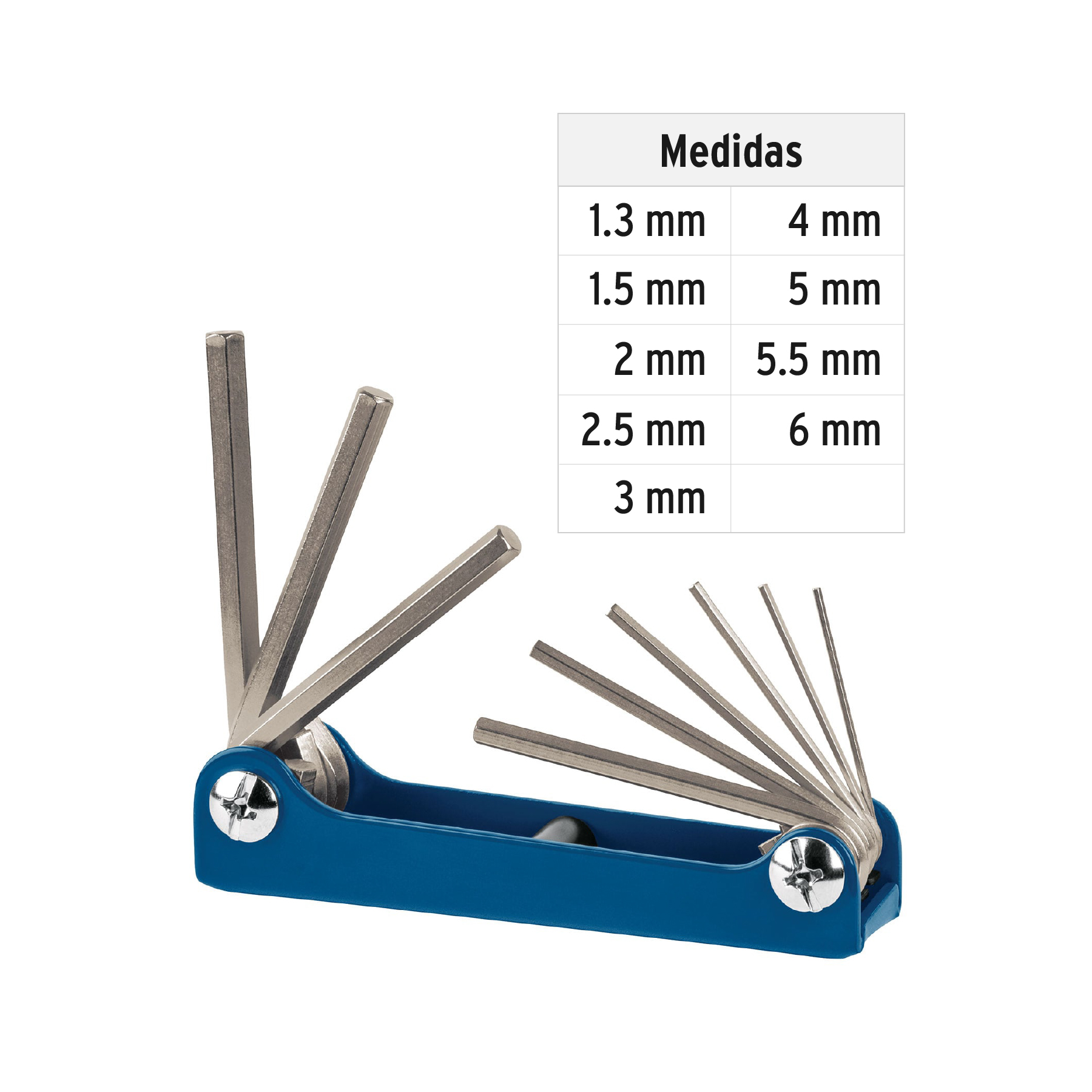Juego de 9 llaves allen mm tipo navaja, cuerpo de lámina