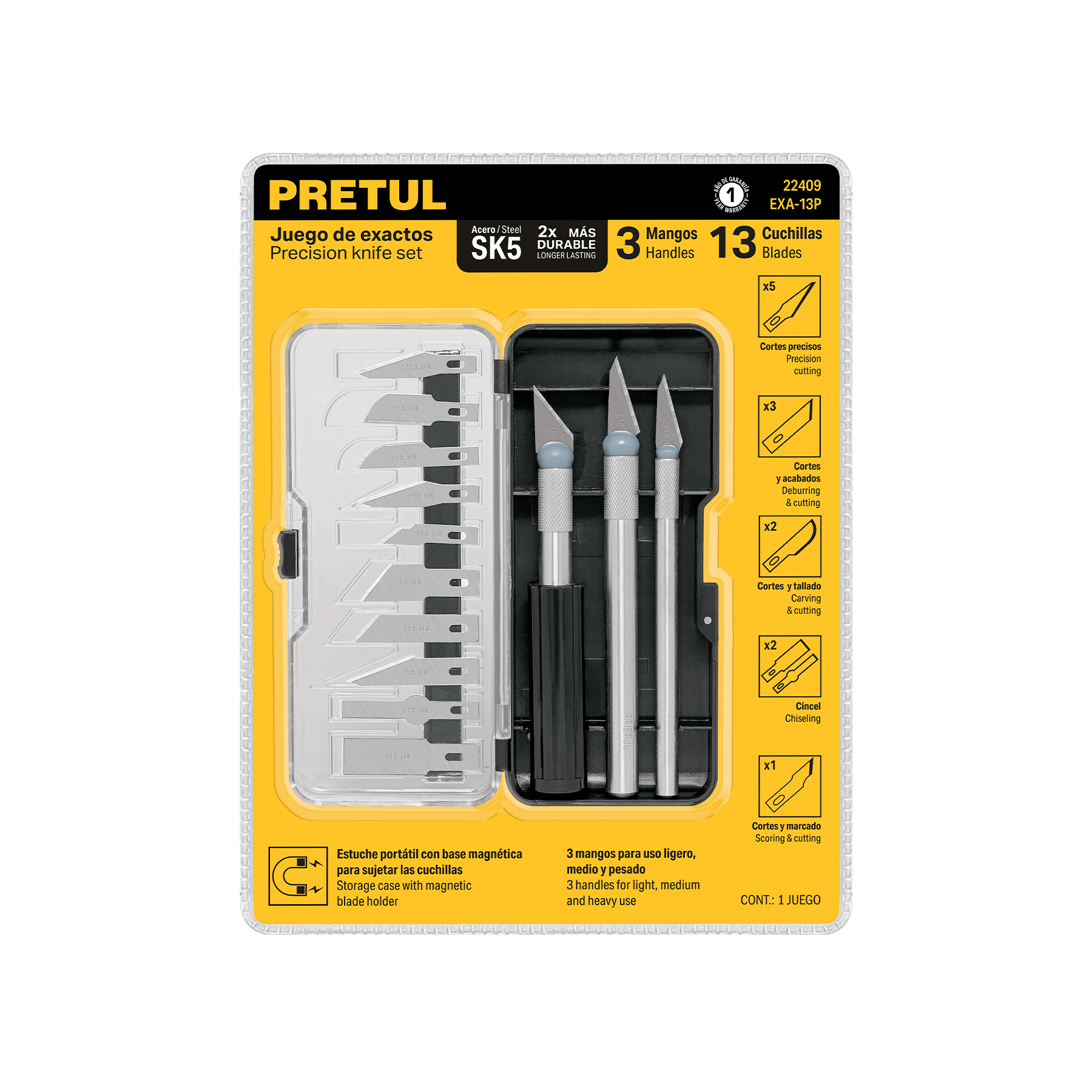 Juego de exactos con 13 cuchillas en estuche, PRETUL