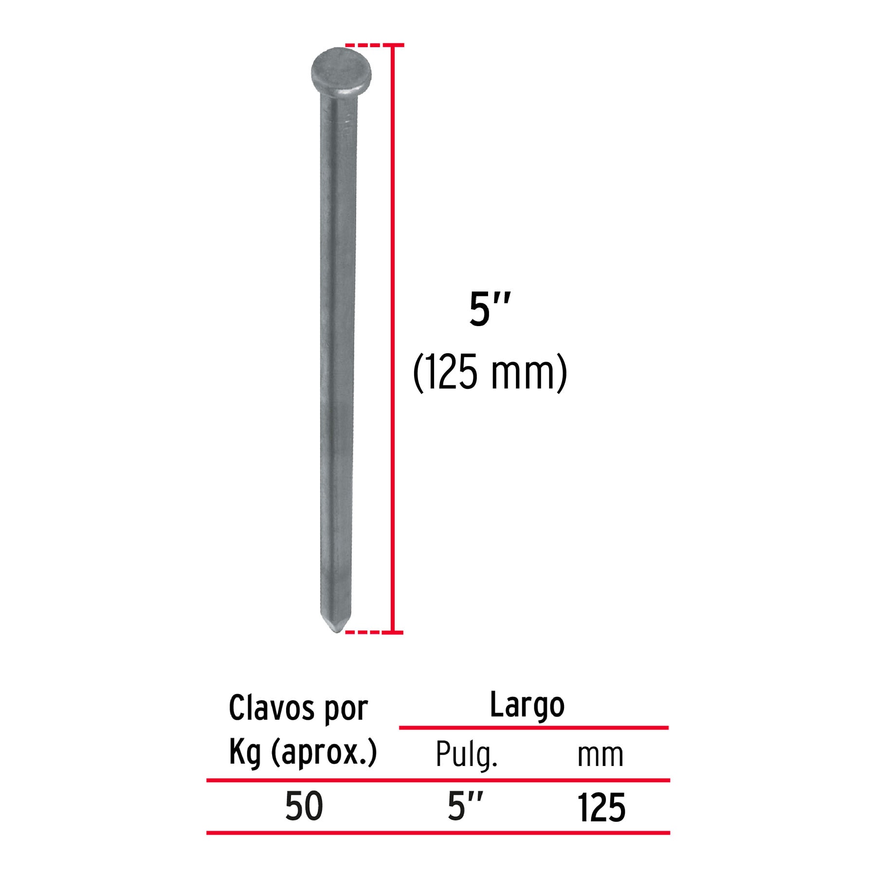 Kilo de clavo estándar 5′ con cabeza en caja de 25 kg, FIERO