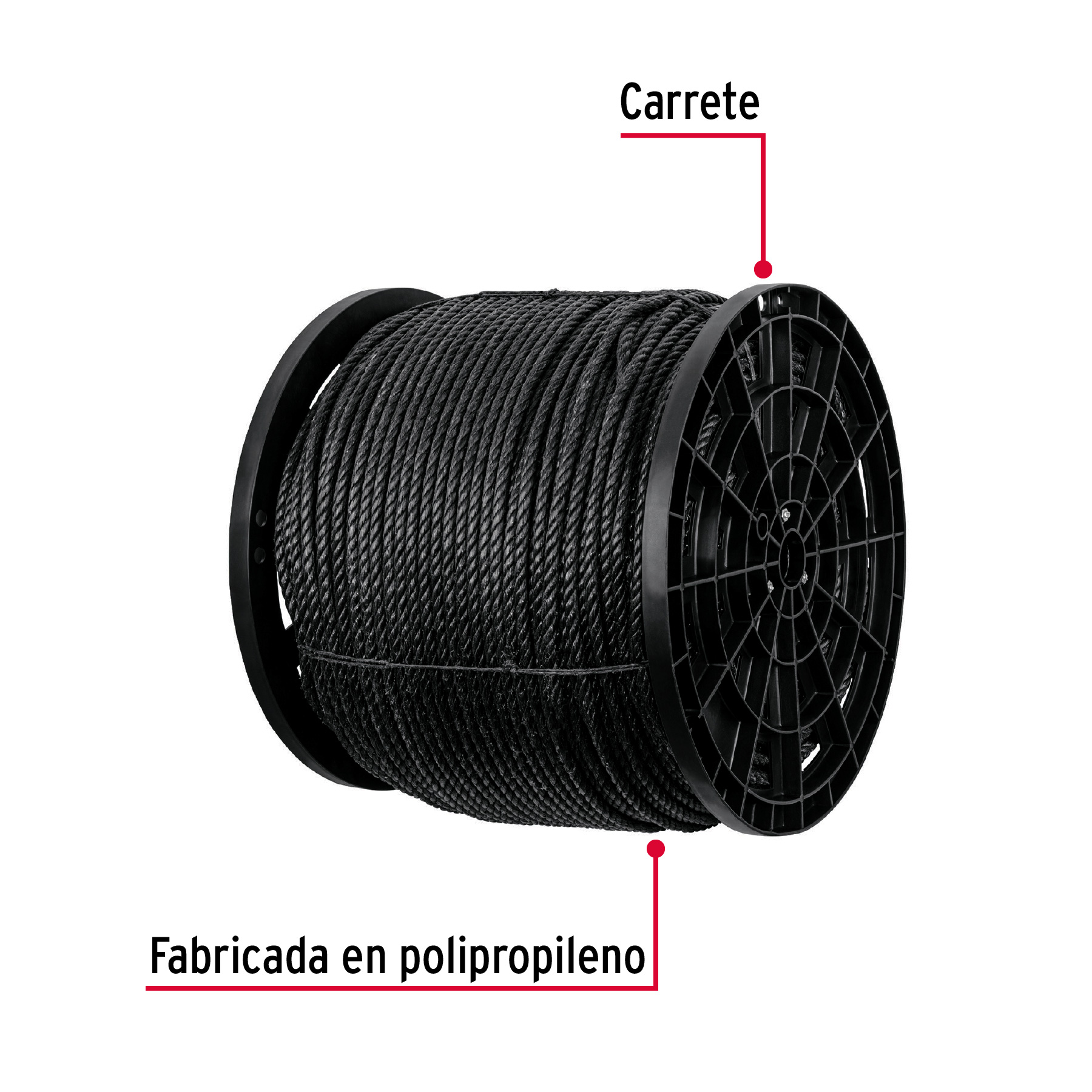Kilo de cuerda negra de polipropileno 10 mm, carrete 20kg