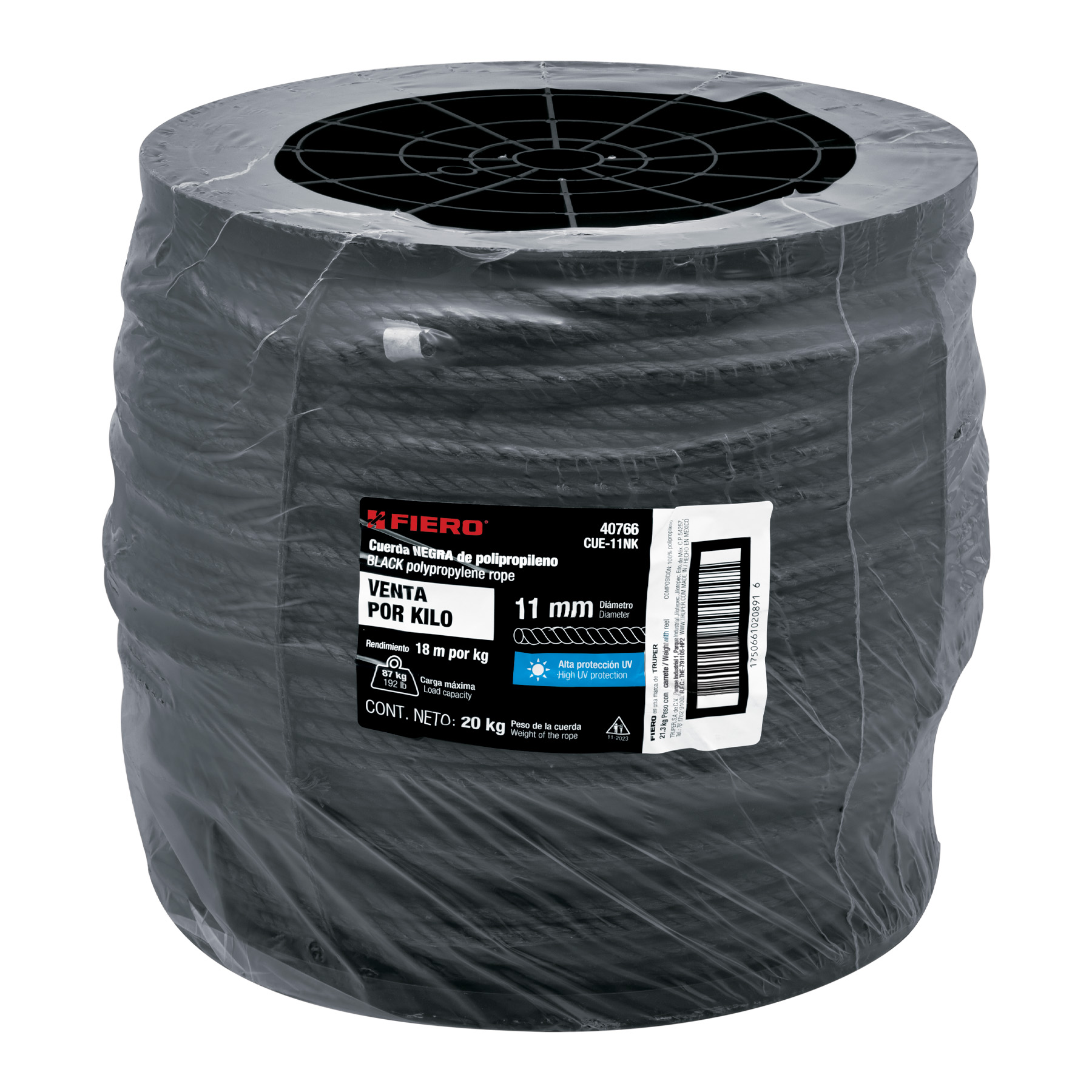 Kilo de cuerda negra de polipropileno 11 mm, carrete 20kg