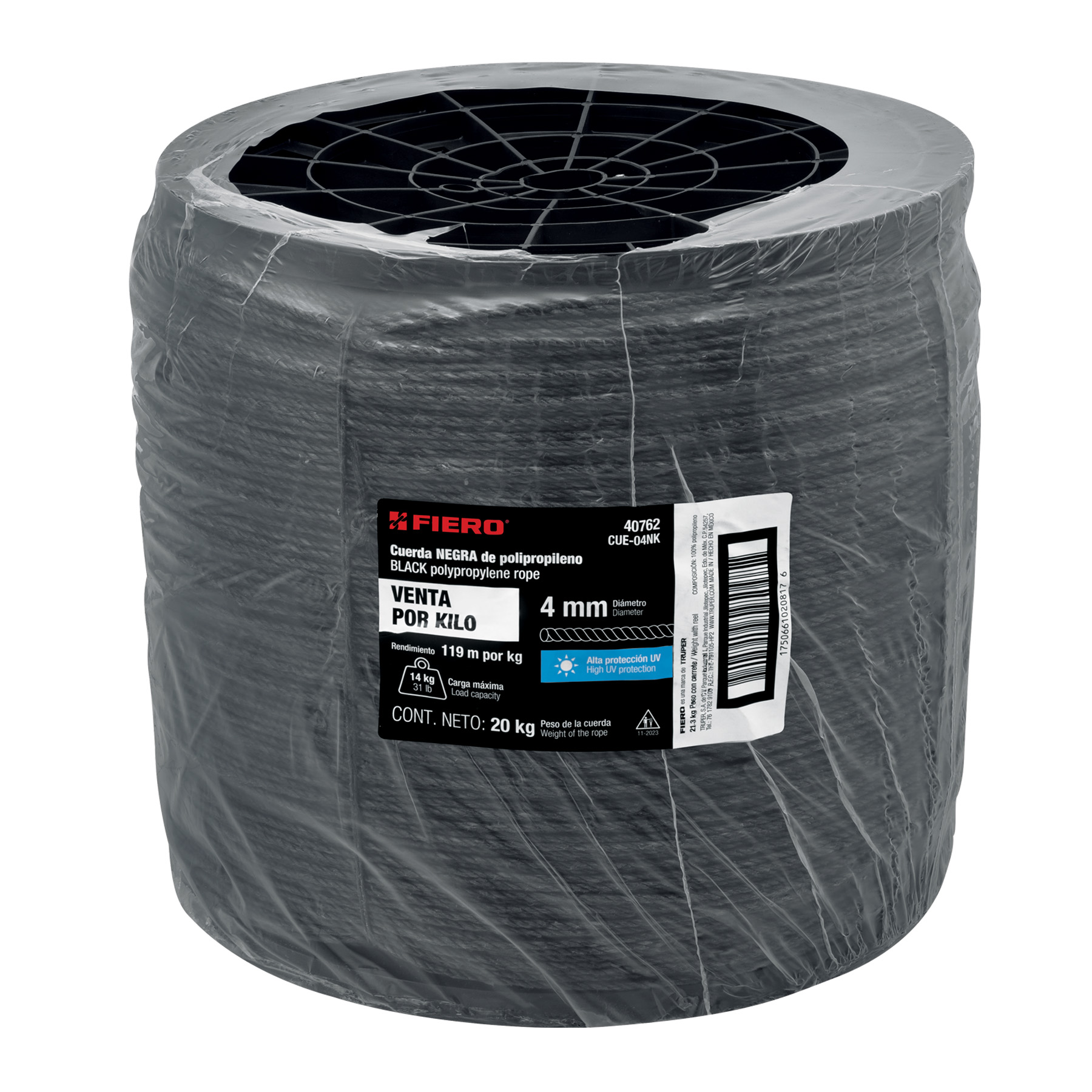 Kilo de cuerda negra de polipropileno 4 mm, carrete 20kg
