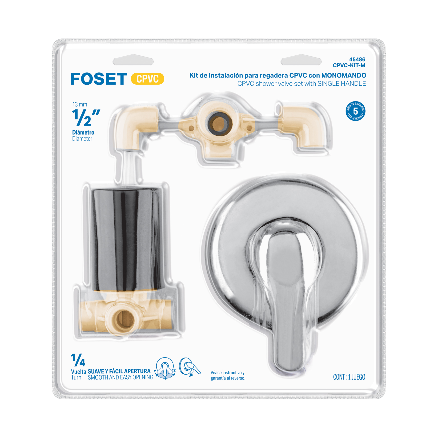 Kit de instalación p/regadera CPVC 1/2′ con monomando, FOSET