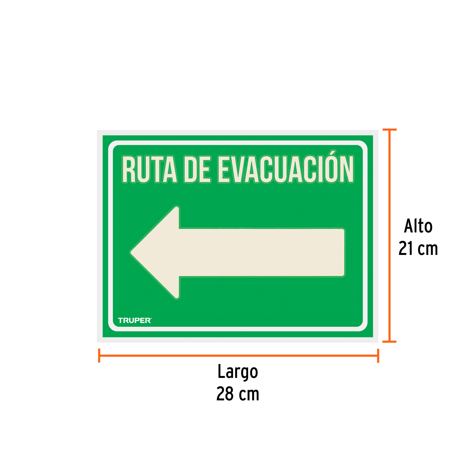 Letrero de señalización ‘RUTA EVACUACIÓN IZQUIERDA’,21×28 cm
