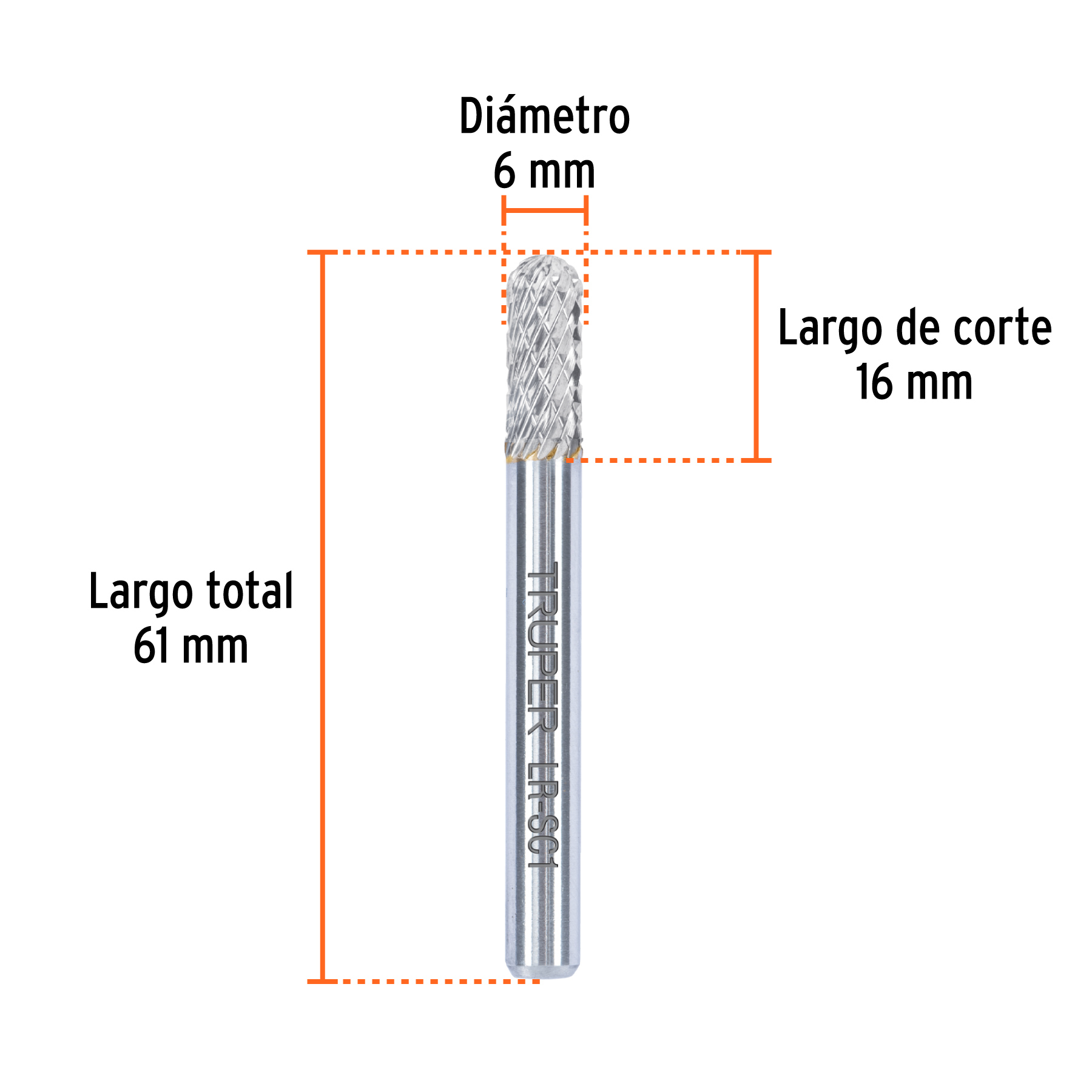 Lima rotativa punta cilindro redonda, 6 mm, TRUPER