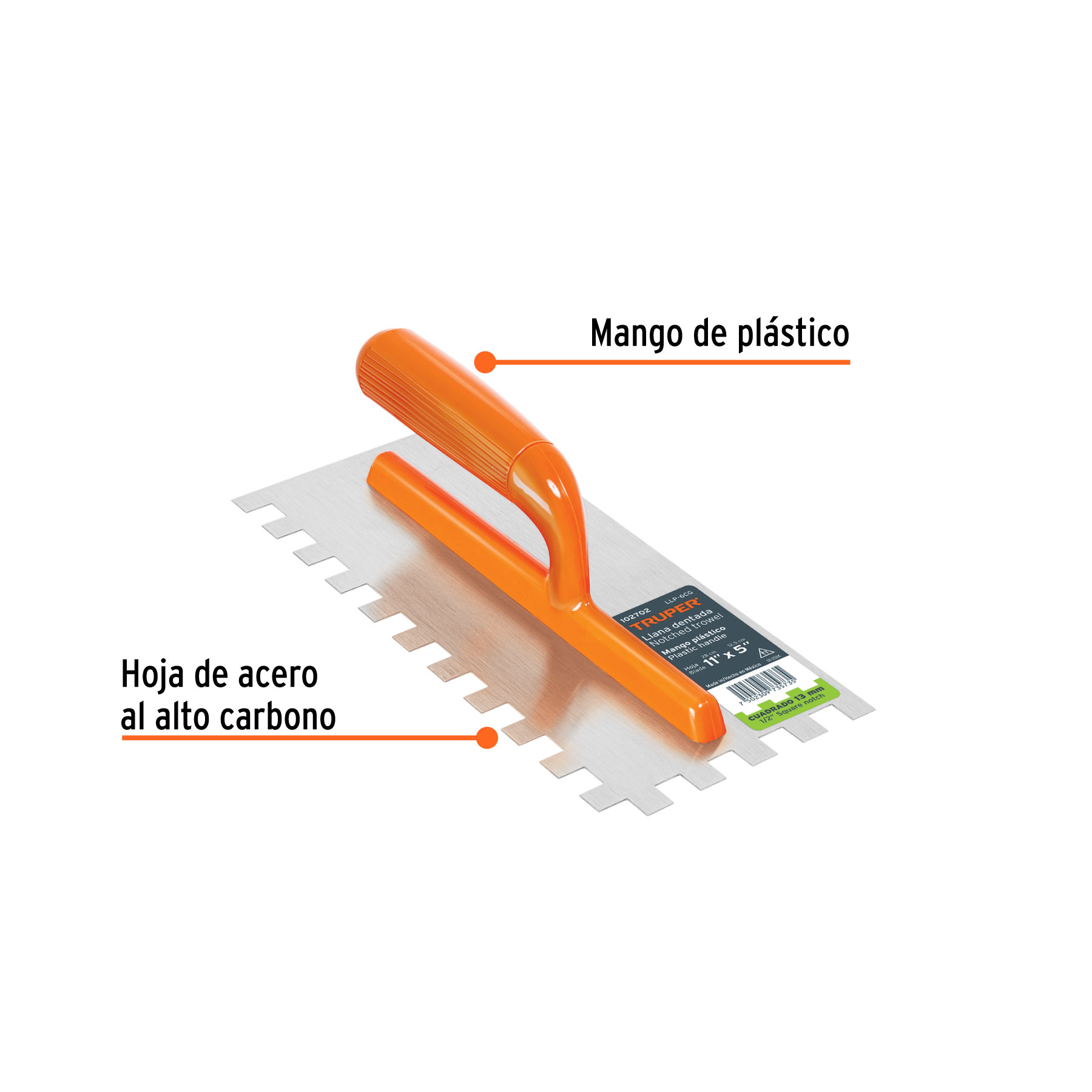Llana 11′ dentado cuadrado 1/2′, 6 remaches, mgo plástico