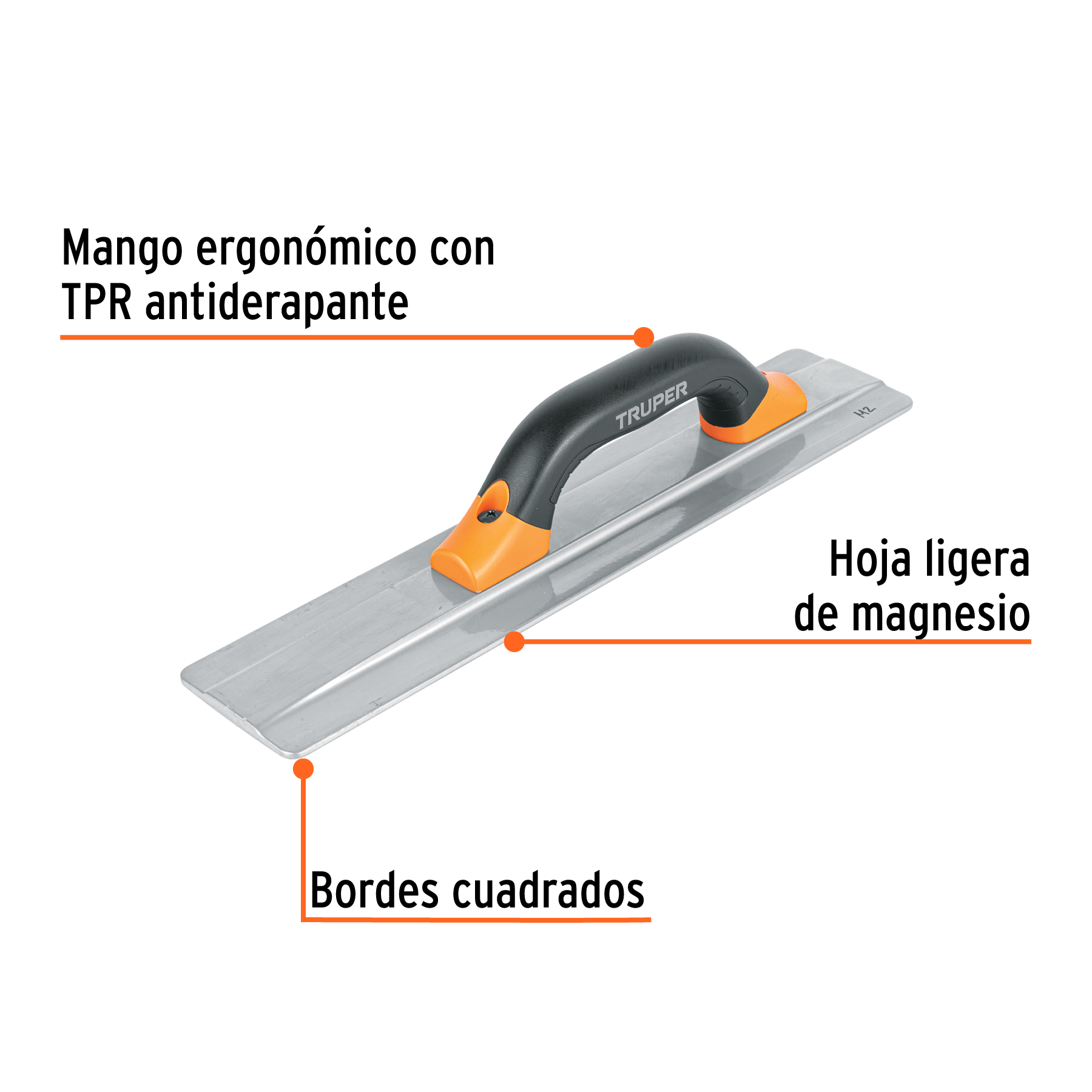 Llana de magnesio 16′,con borde cuadrado, Truper
