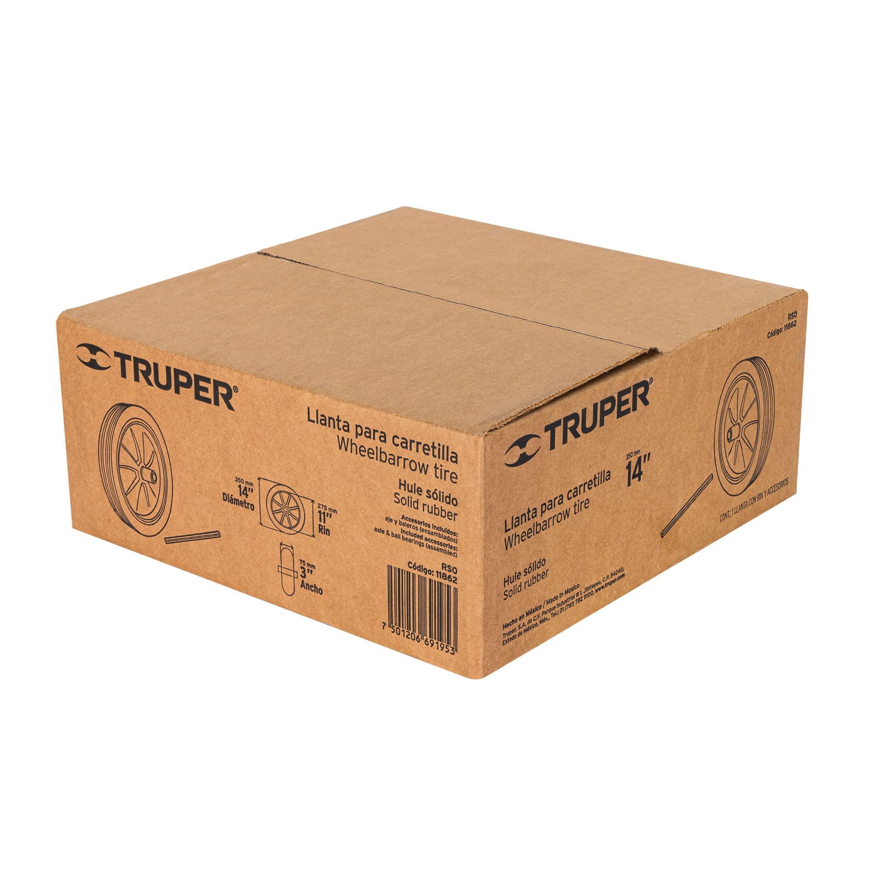 Llanta completa hule sólido 13-1/2′, incluye eje y baleros