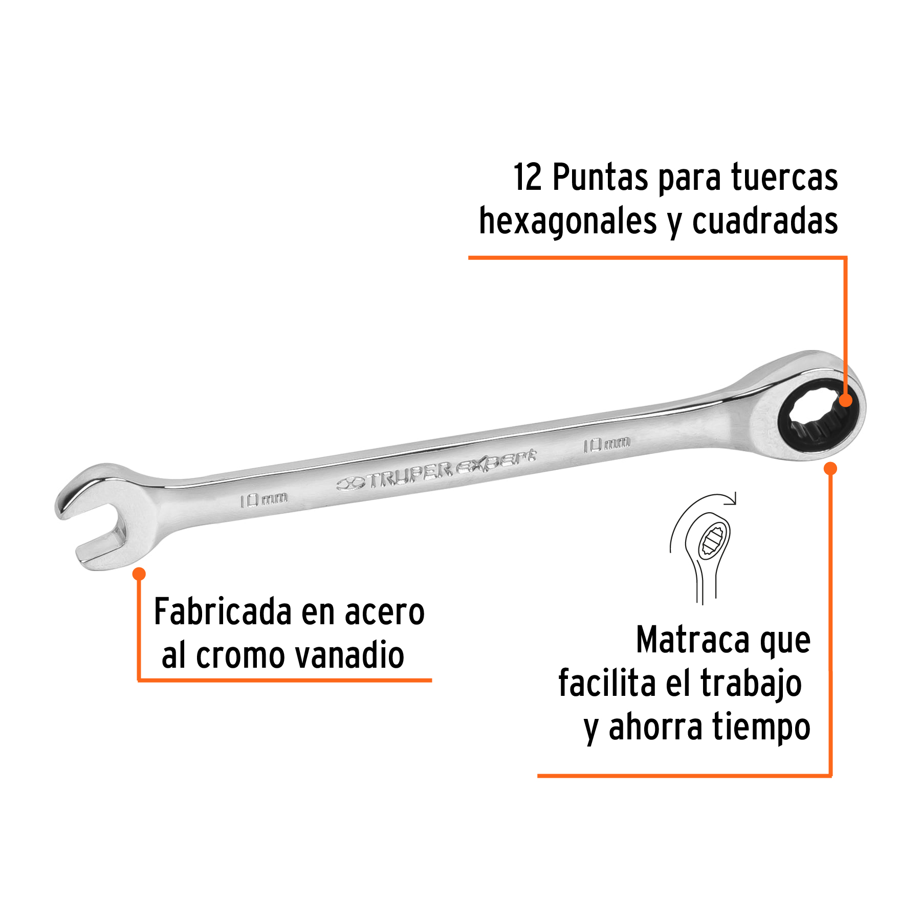 Llave combinada con matraca 10 mm x 154 mm largo, Expert