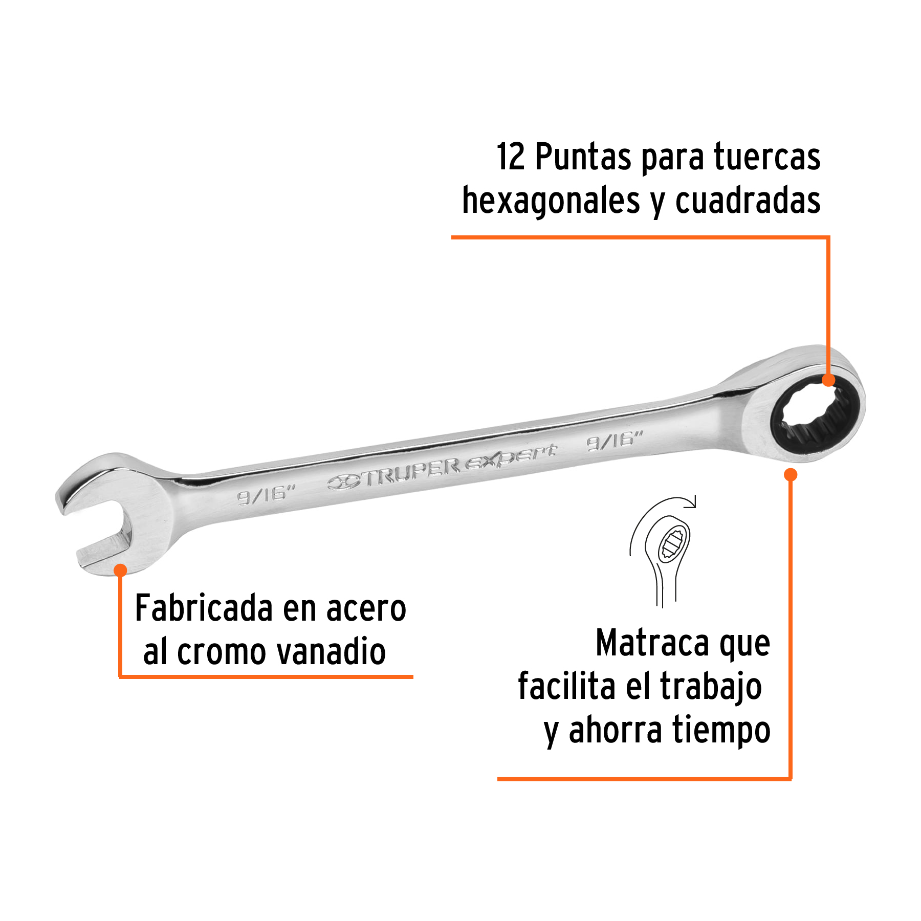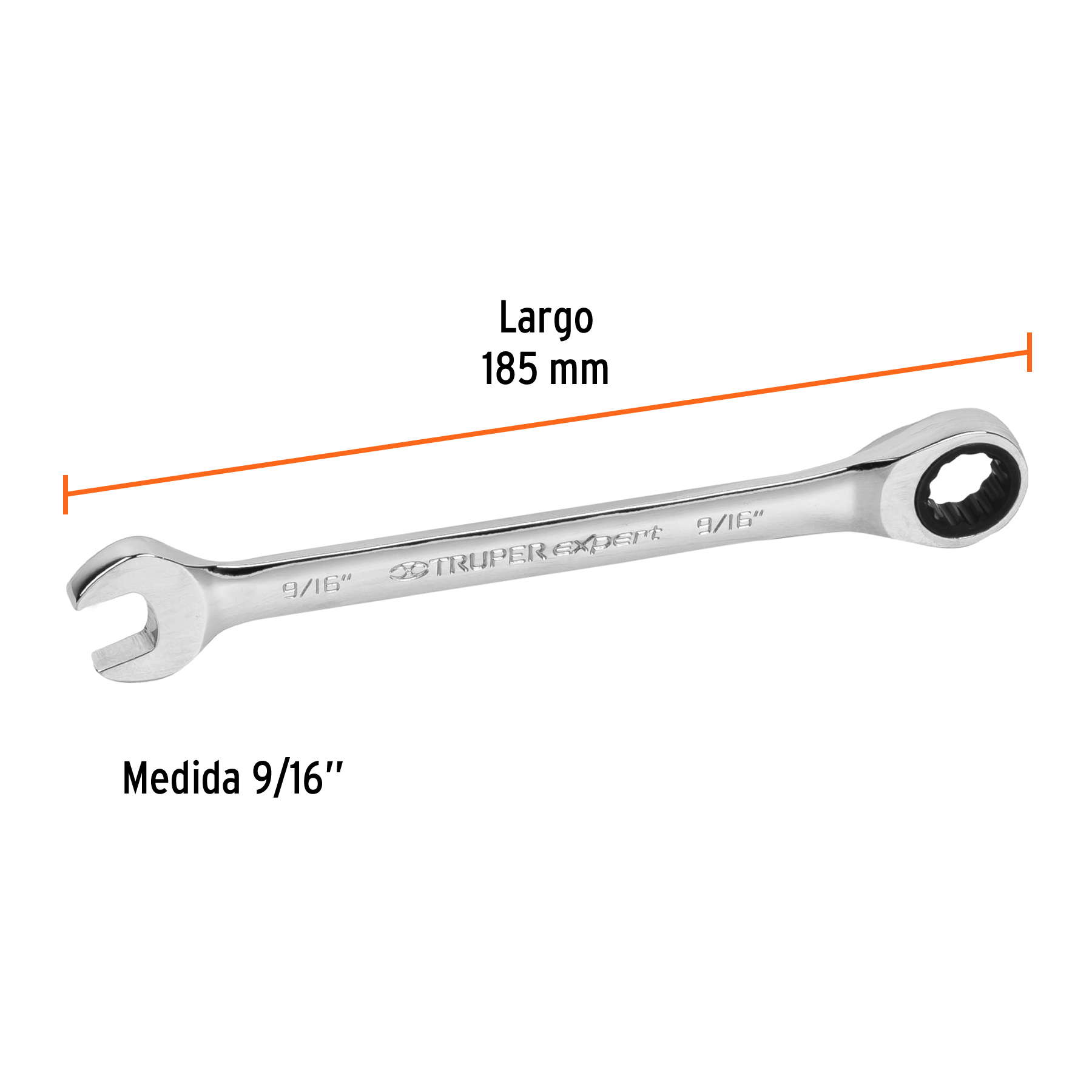 Llave combinada con matraca 9/16′ x 185 mm largo, Expert