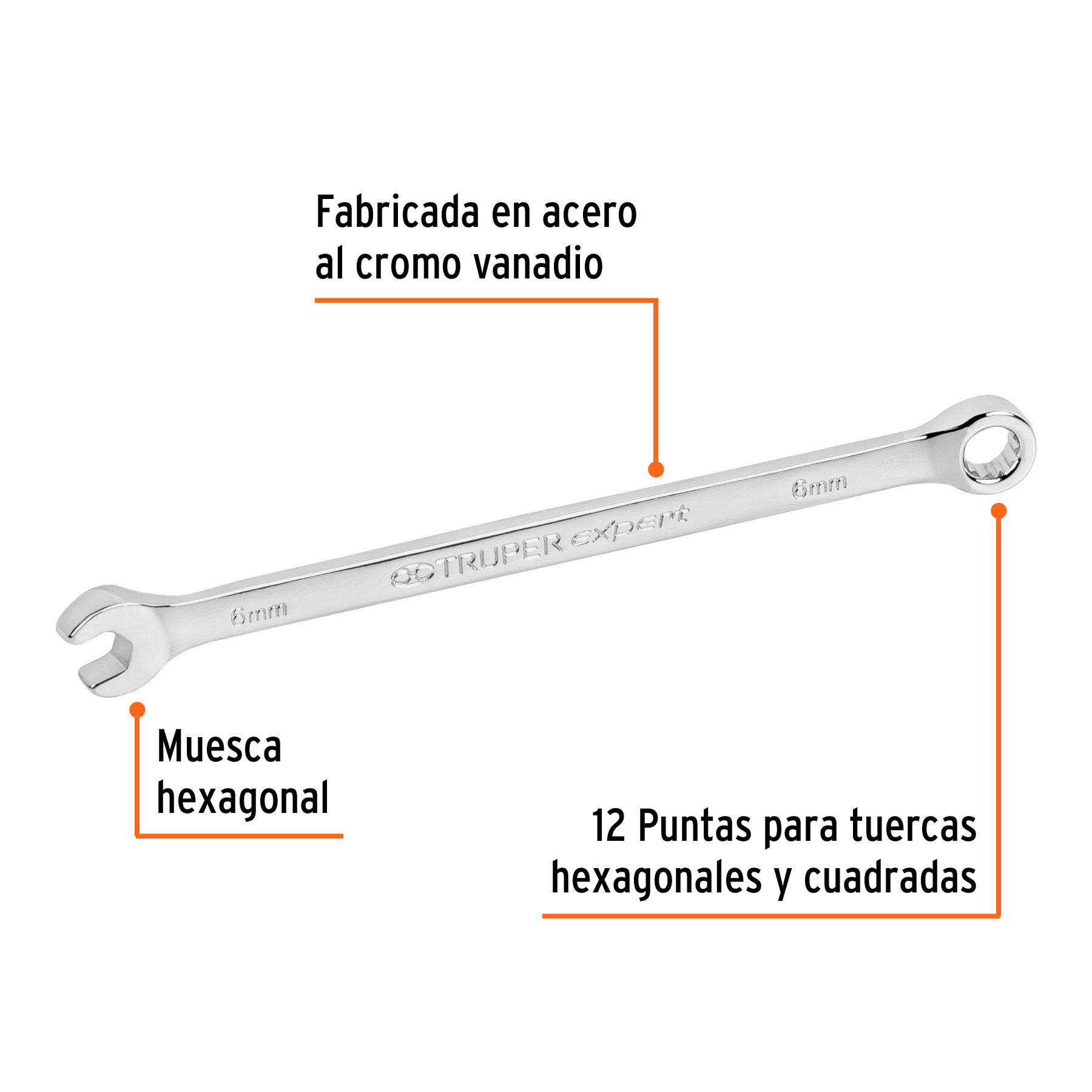 Llave combinada extralarga 6 mm x 125 mm de largo, Expert