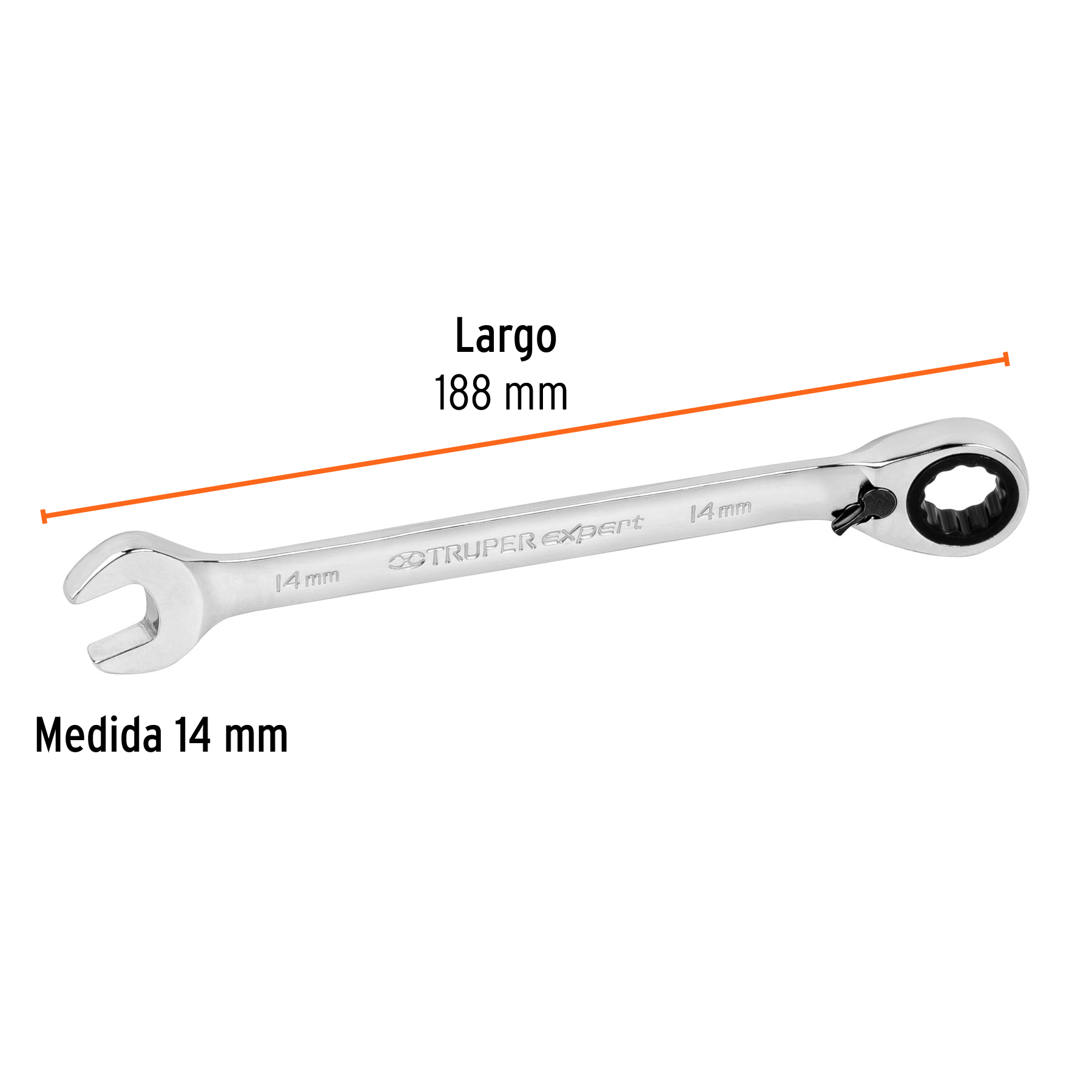 Llave combinada matraca reversible 14mmx188 mm largo, Expert