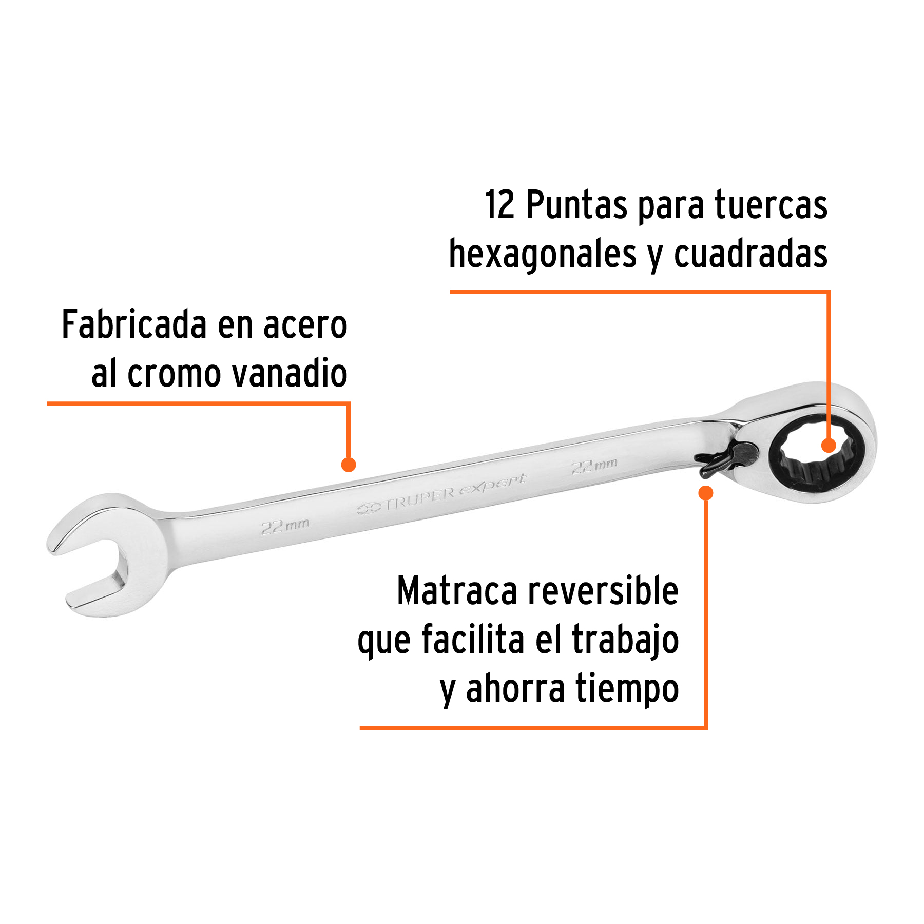 Llave combinada matraca reversible 22mmx288 mm largo, Expert