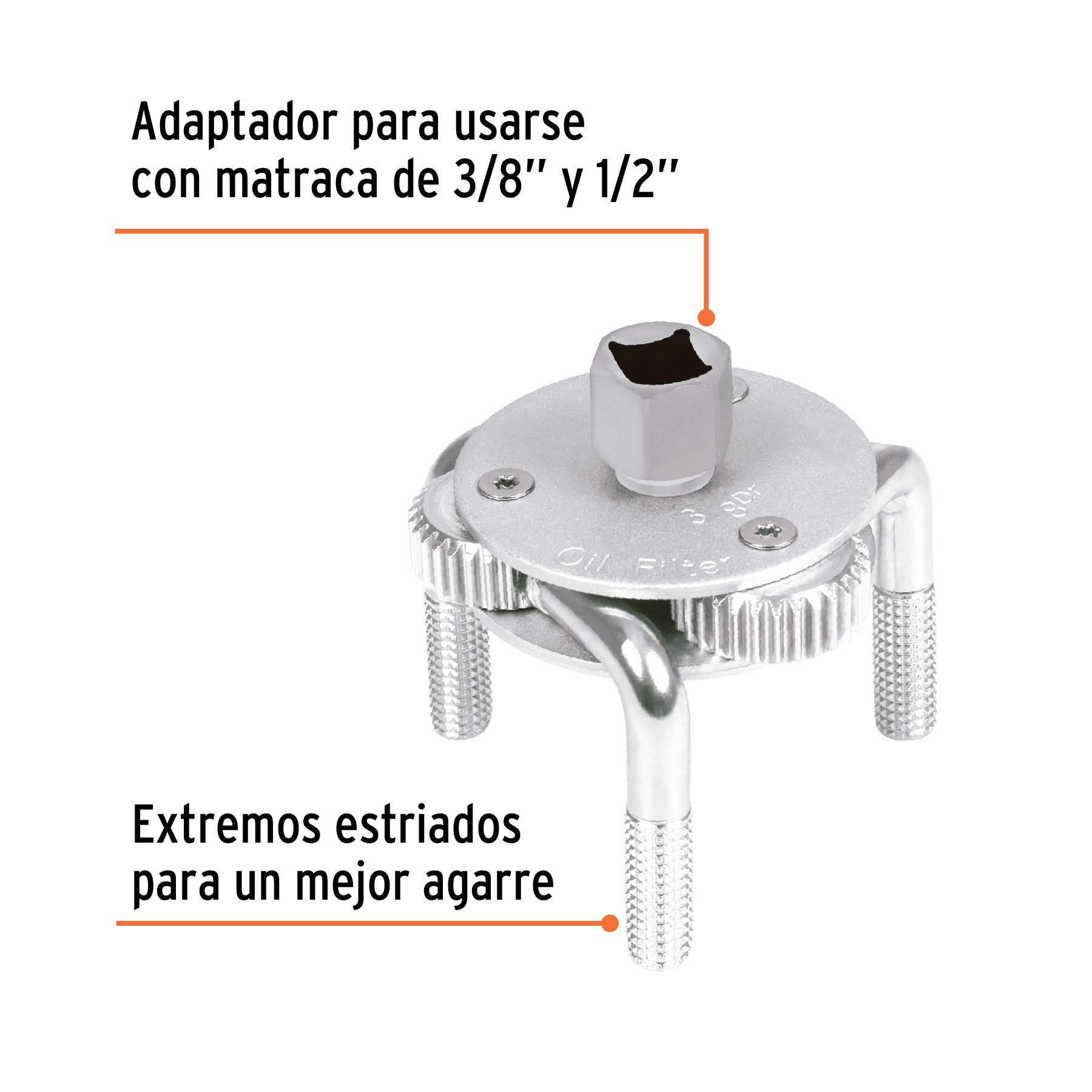 Llave de 3 puntos 3′ a 4-1/2′ para filtro de aceite, Truper