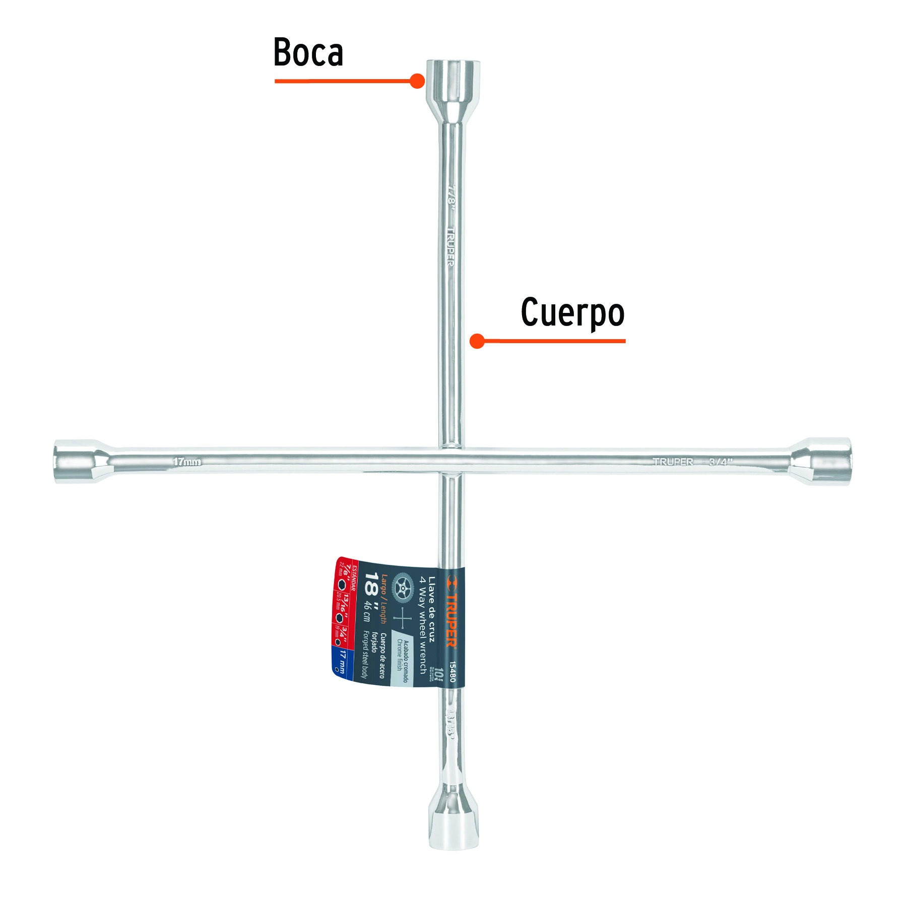 Llave de cruz 18′ pulida y cromada, TRUPER