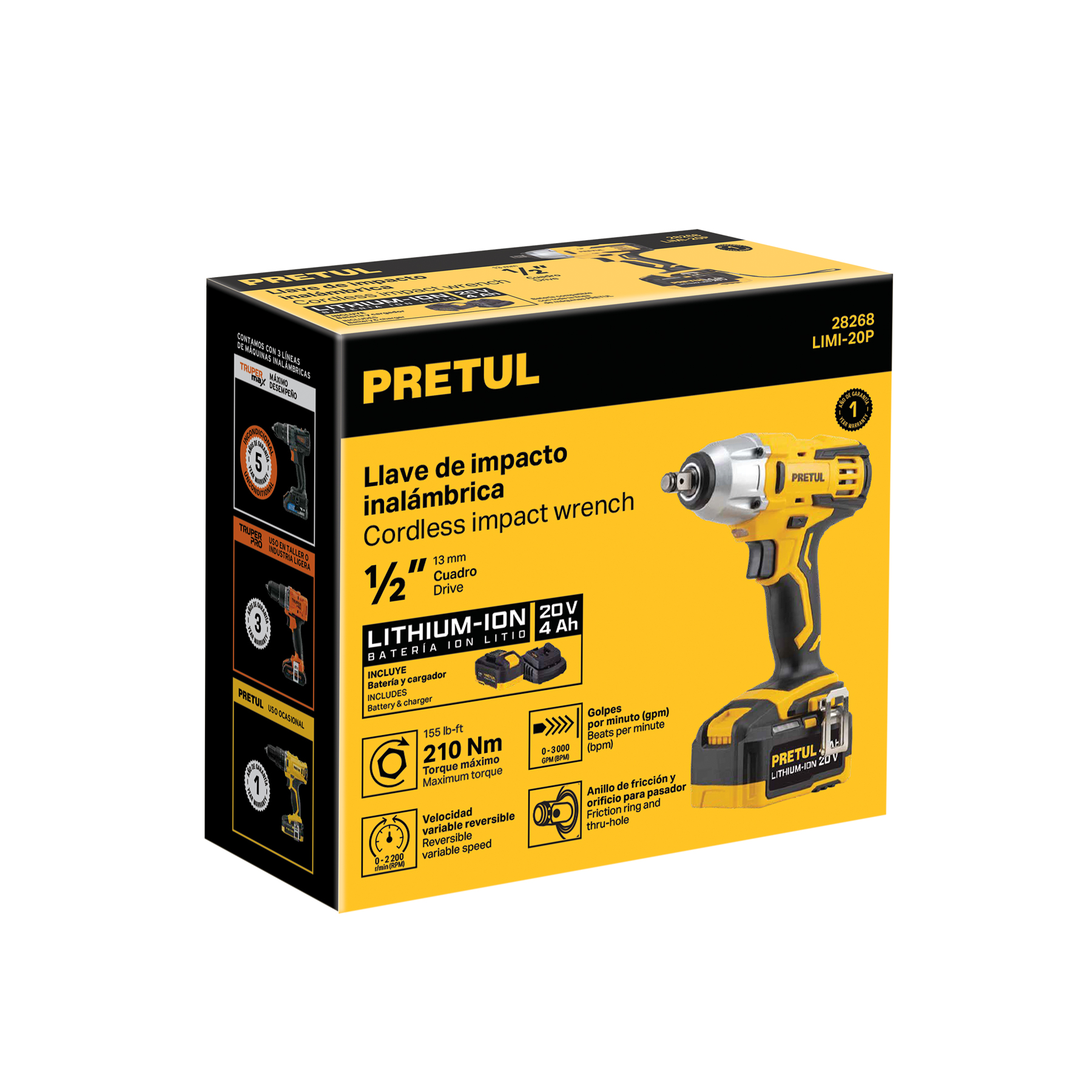 Llave de impacto 1/2′, 20V, 155 lb/ft, 1 batería 4Ah, PRETUL