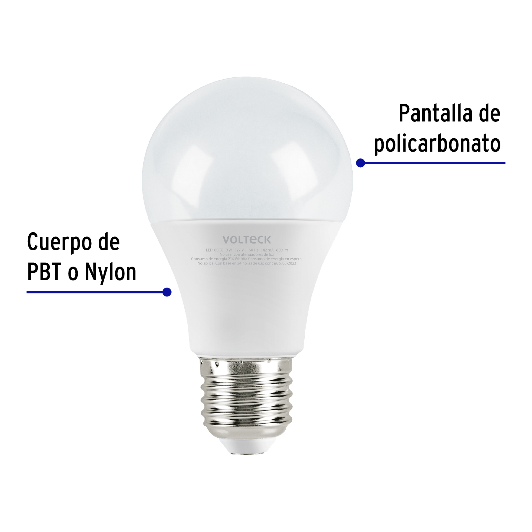 Lámpara LED A19 9 W (equiv. 60 W), luz cálida, caja, Volteck
