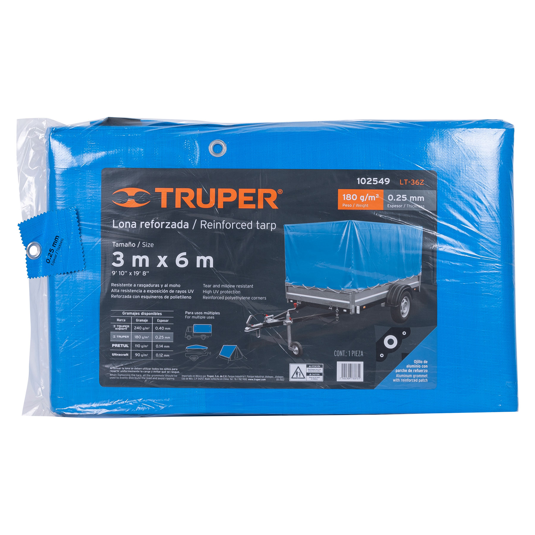 Lona de polietileno reforzada 3 x 6 m, azul, 180g/m2, TRUPER