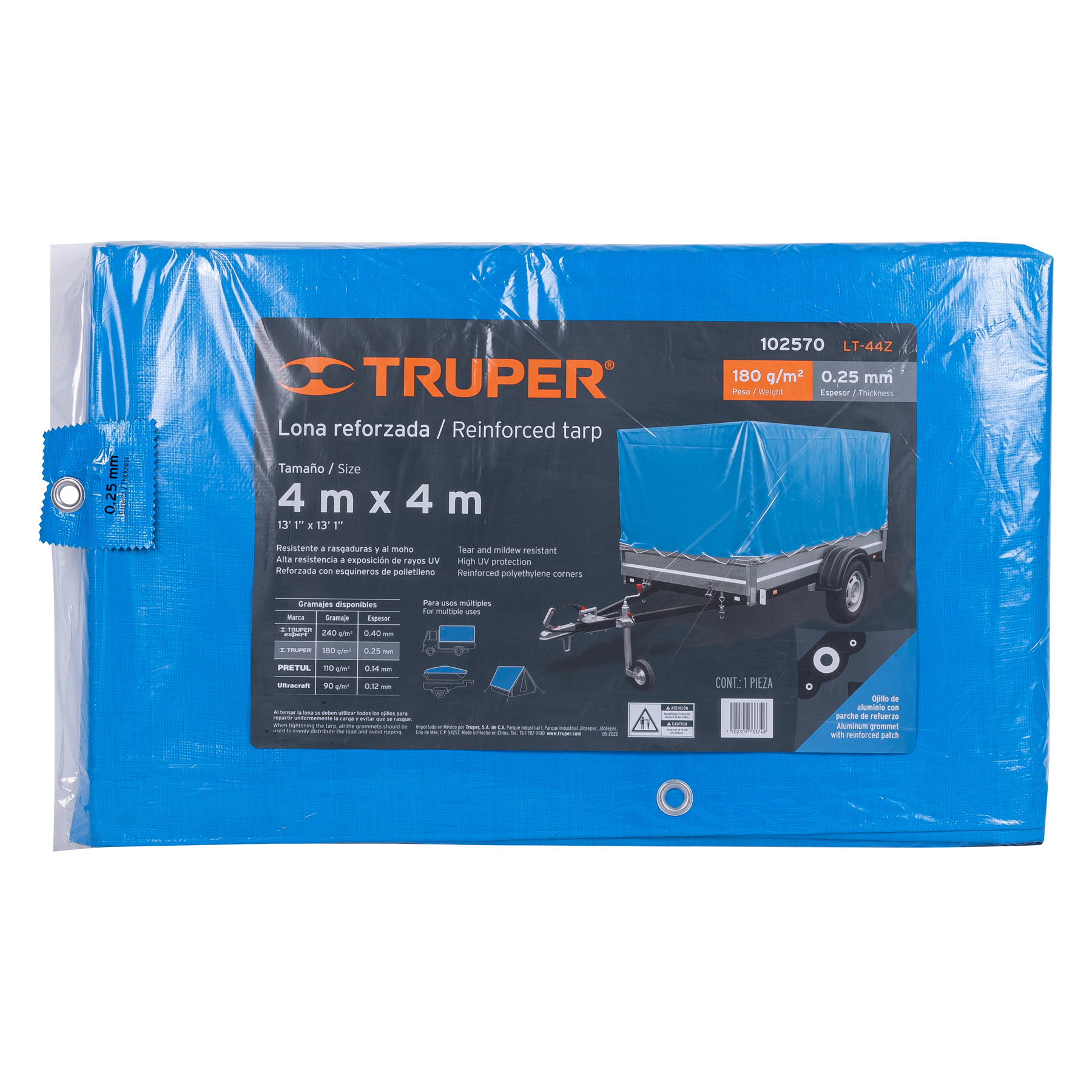 Lona de polietileno reforzada 4 x 4 m, azul, 180g/m2, TRUPER