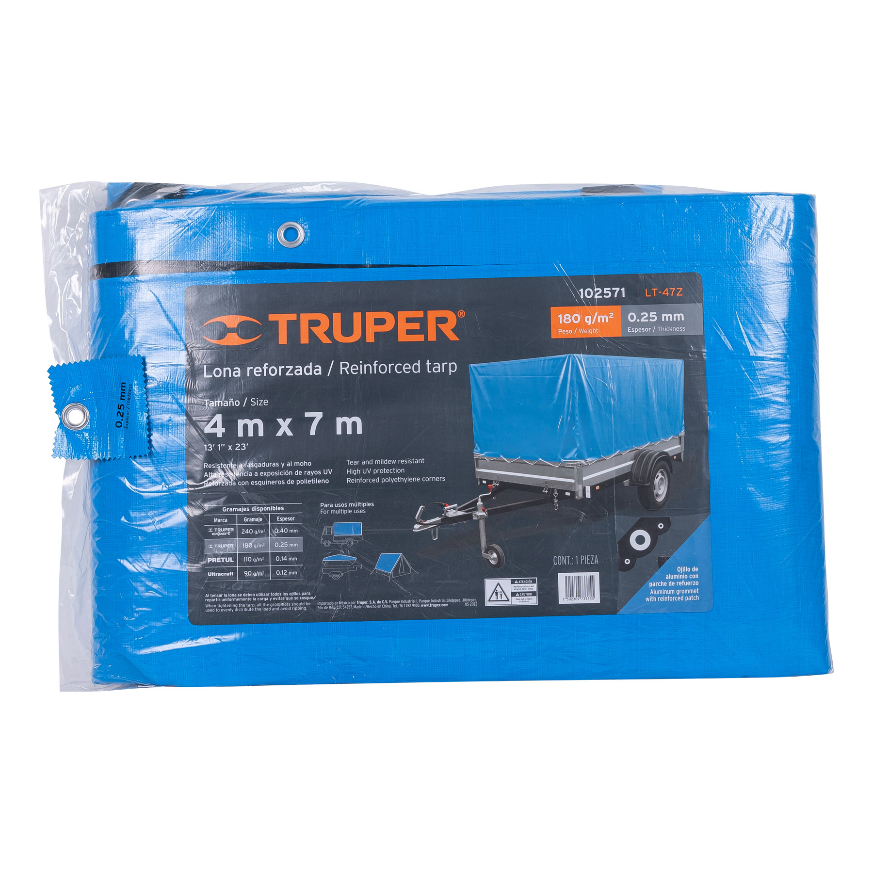 Lona de polietileno reforzada 4 x 7 m, azul, 180g/m2, TRUPER