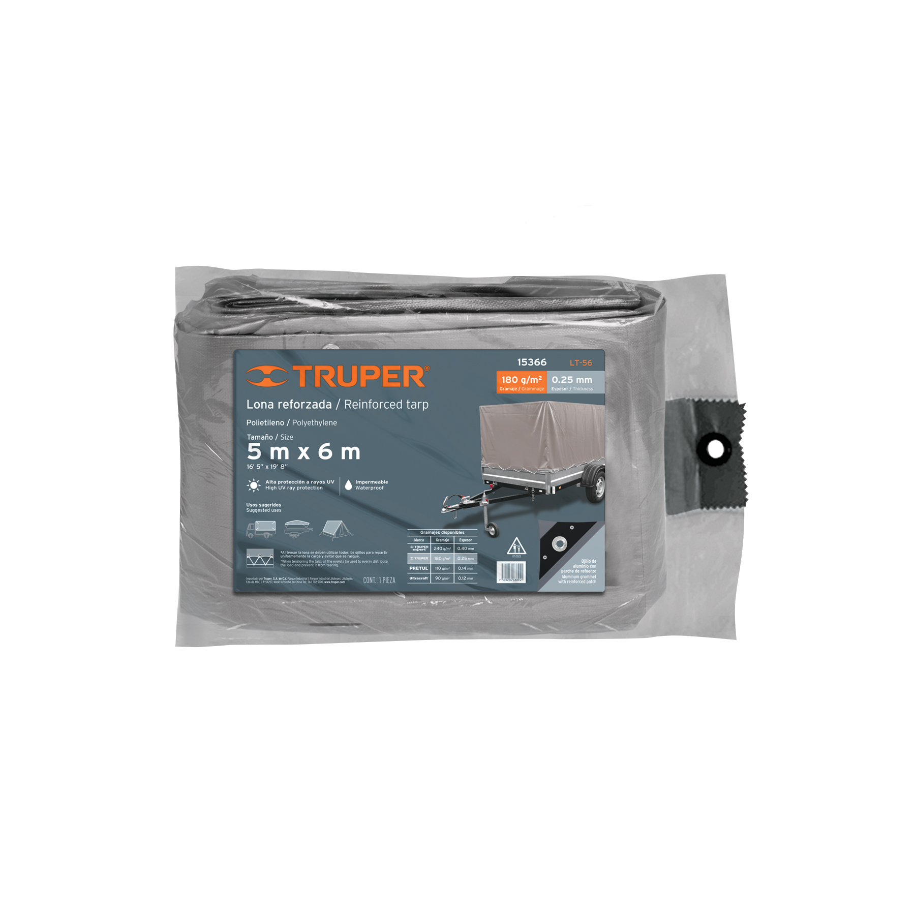 Lona de polietileno reforzada 1.5×2 m, gris, 180g/m2, TRUPER