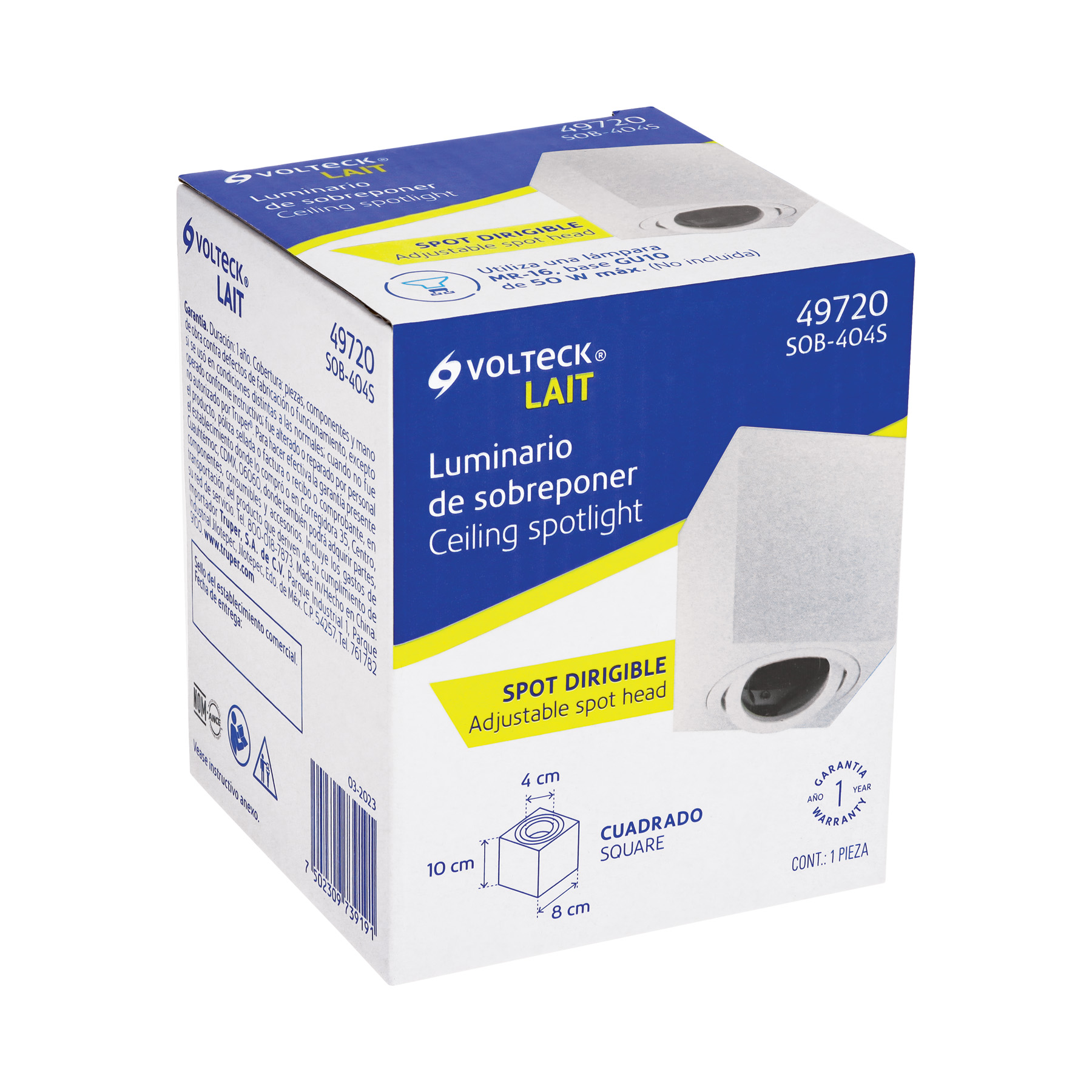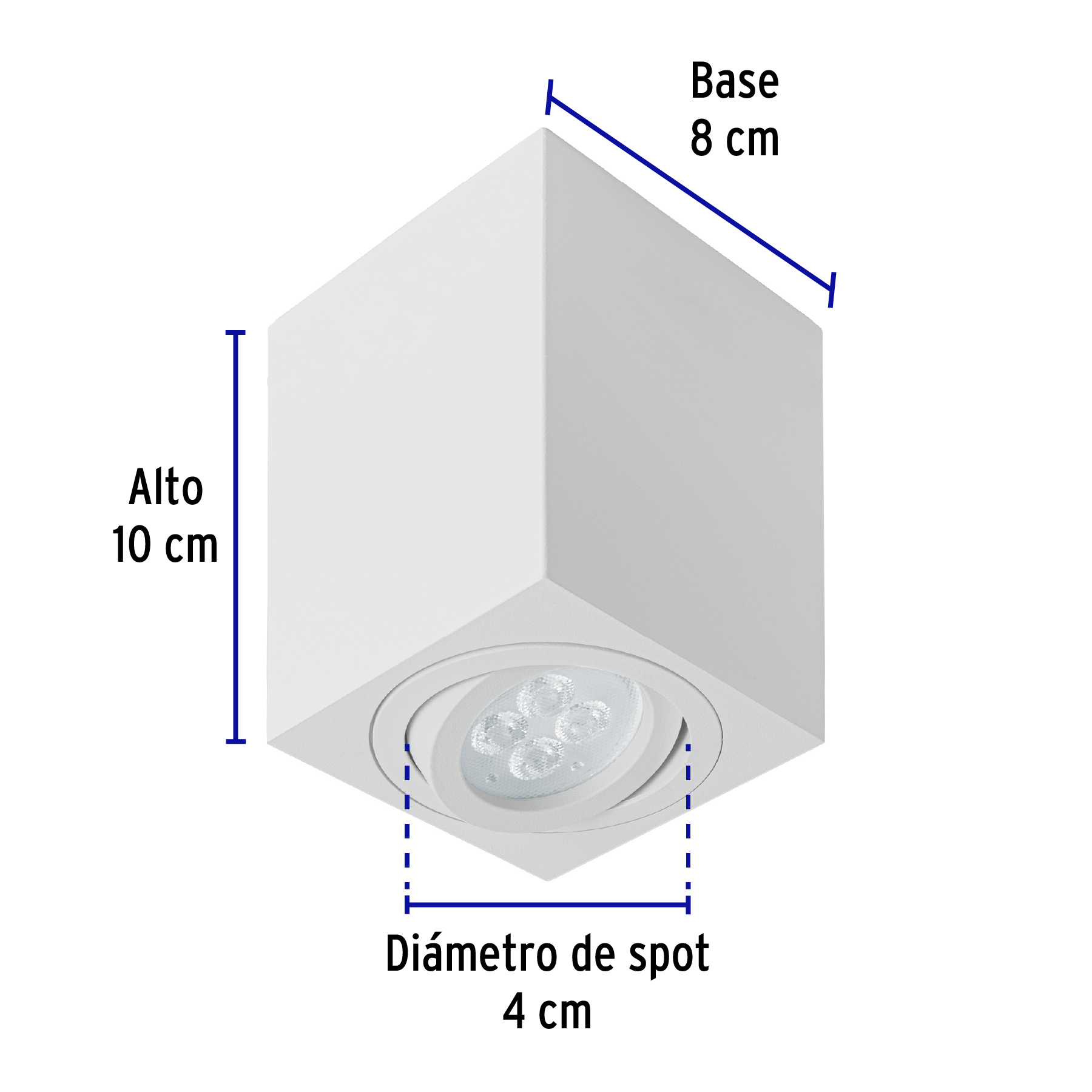 Luminario de sobreponer c/spot dirigible, cuadrado, blanco