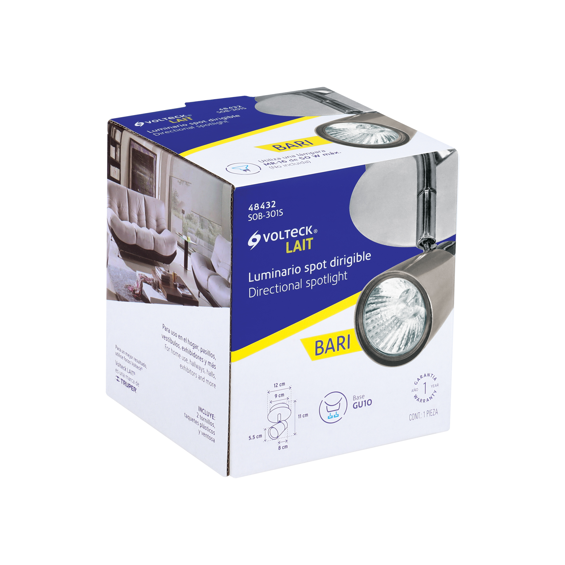 Luminario de sobreponer con 1 spot base GU10, Volteck