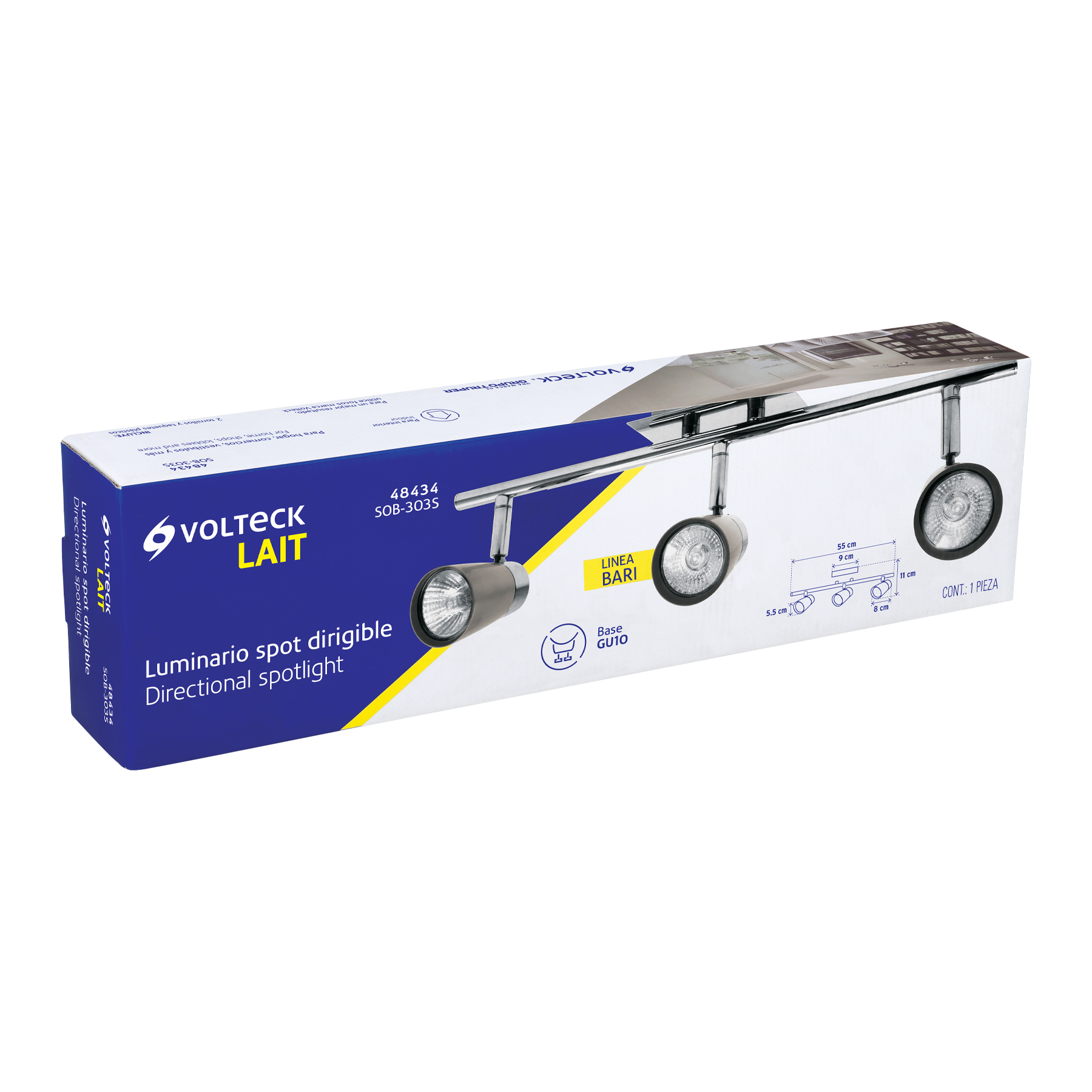 Luminario de sobreponer con 3 spots base GU10, Volteck