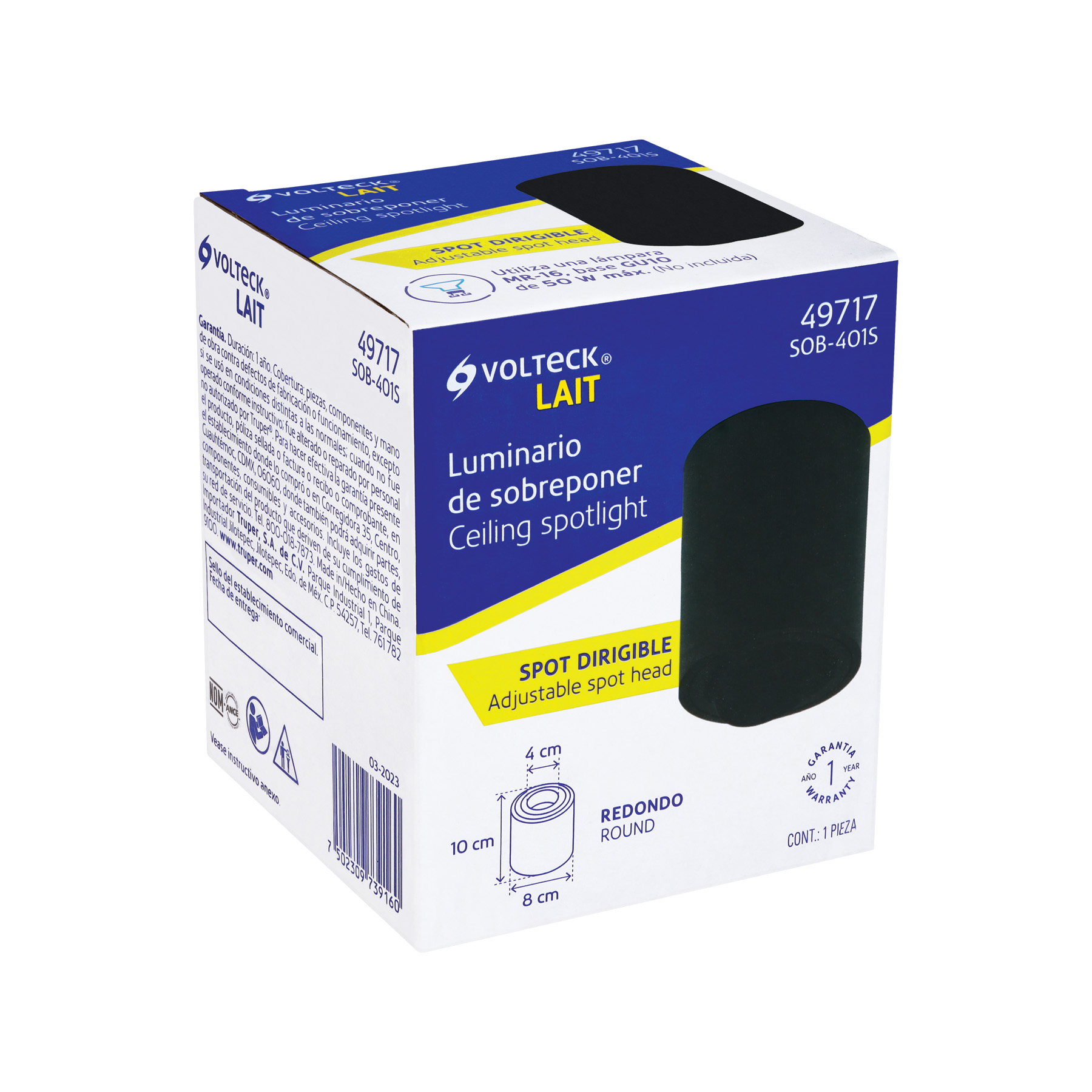 Luminario de sobreponer con spot dirigible, redondo, negro