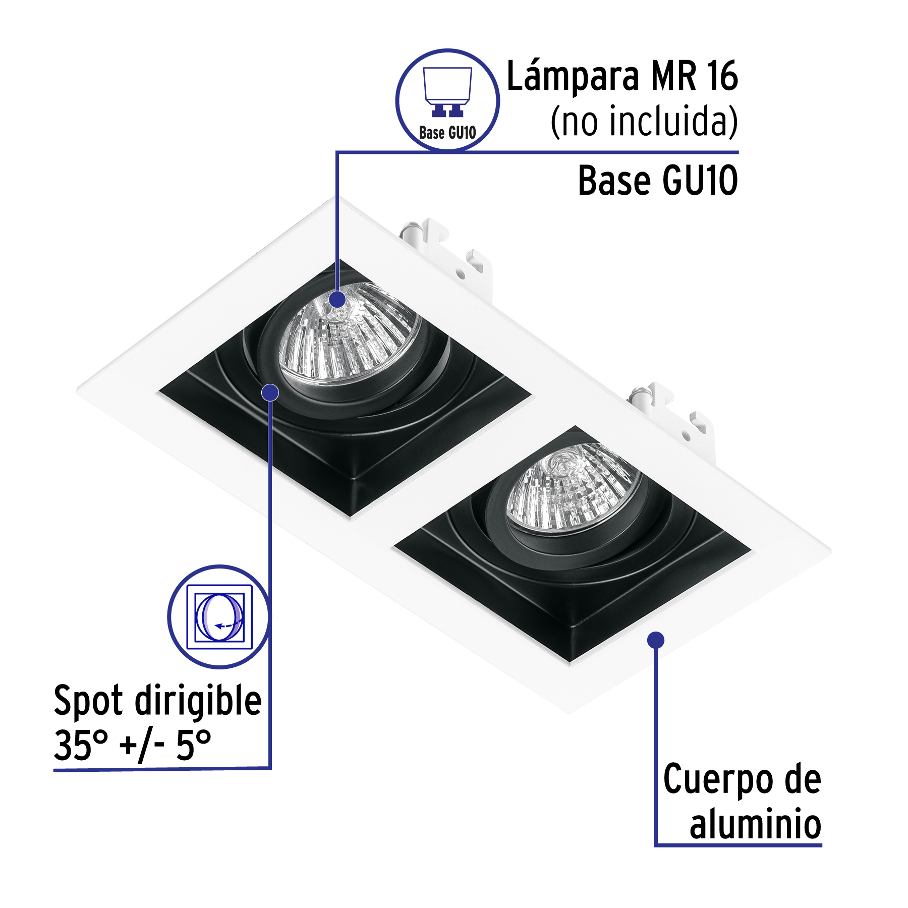 Sé el primero en valorar “Luminario empotrable con 2 spots dirigibles, blanco, VOLTECK” Cancelar la respuesta