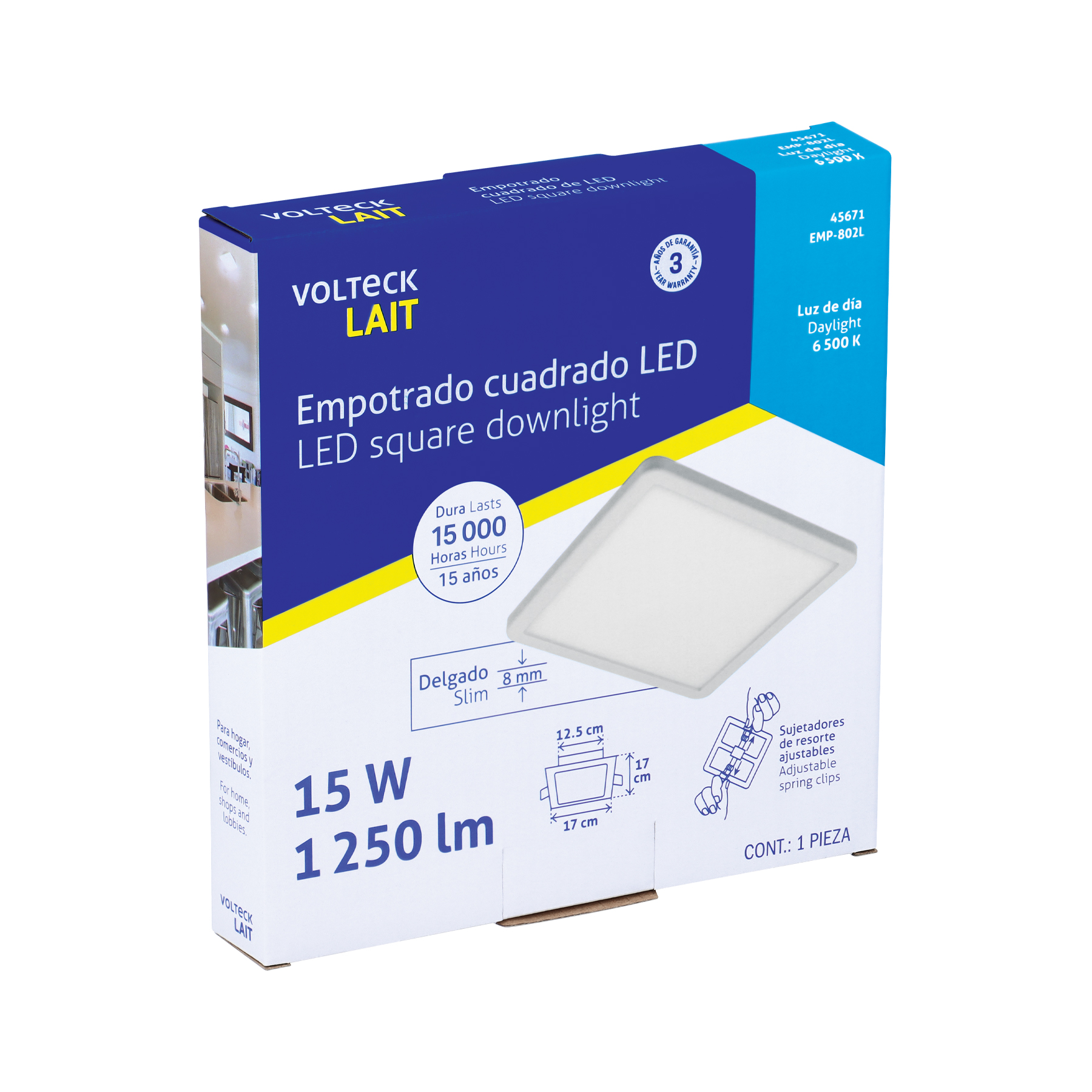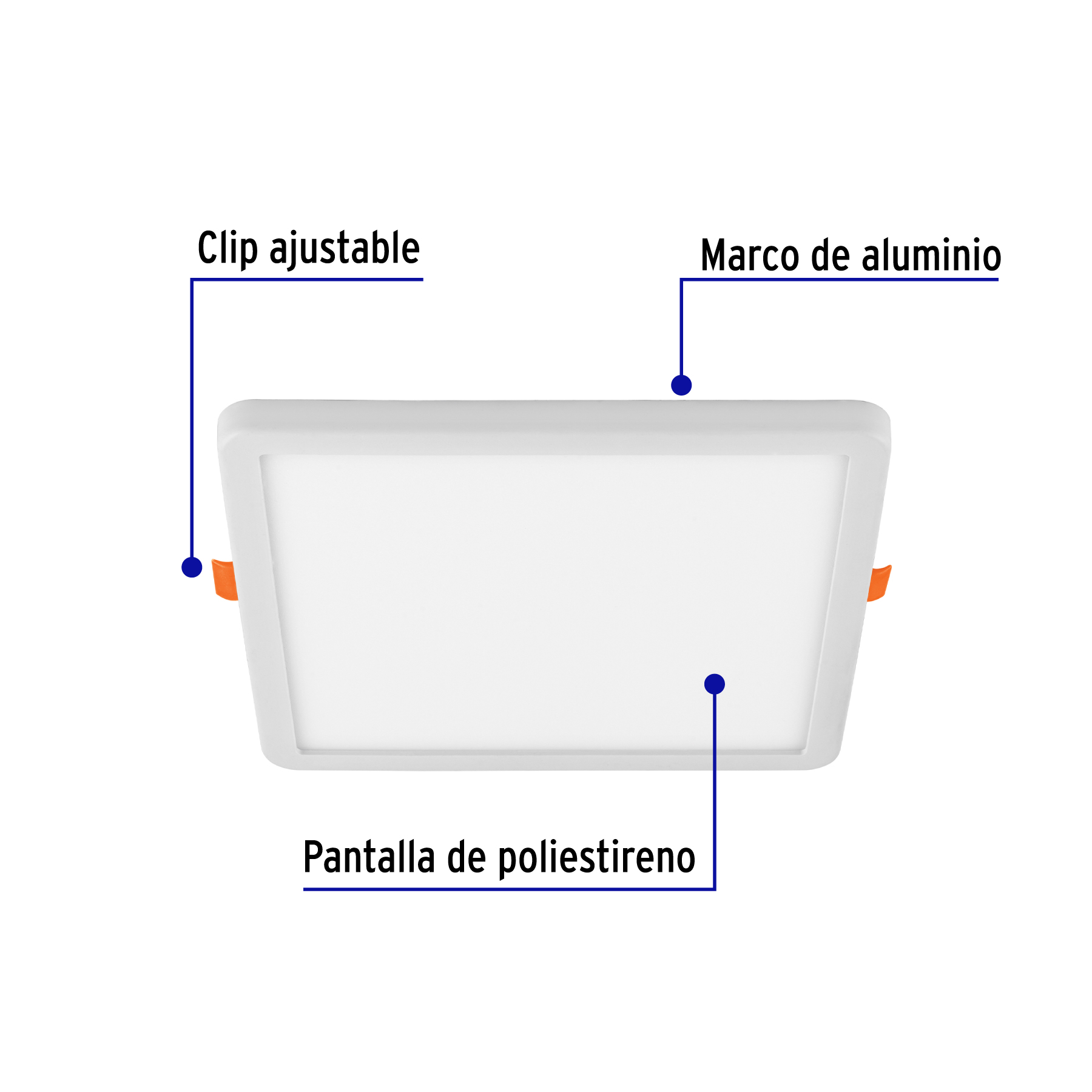 Luminario LED plafón 15W 6500K, ajustable, cuadrado, VOLTECK