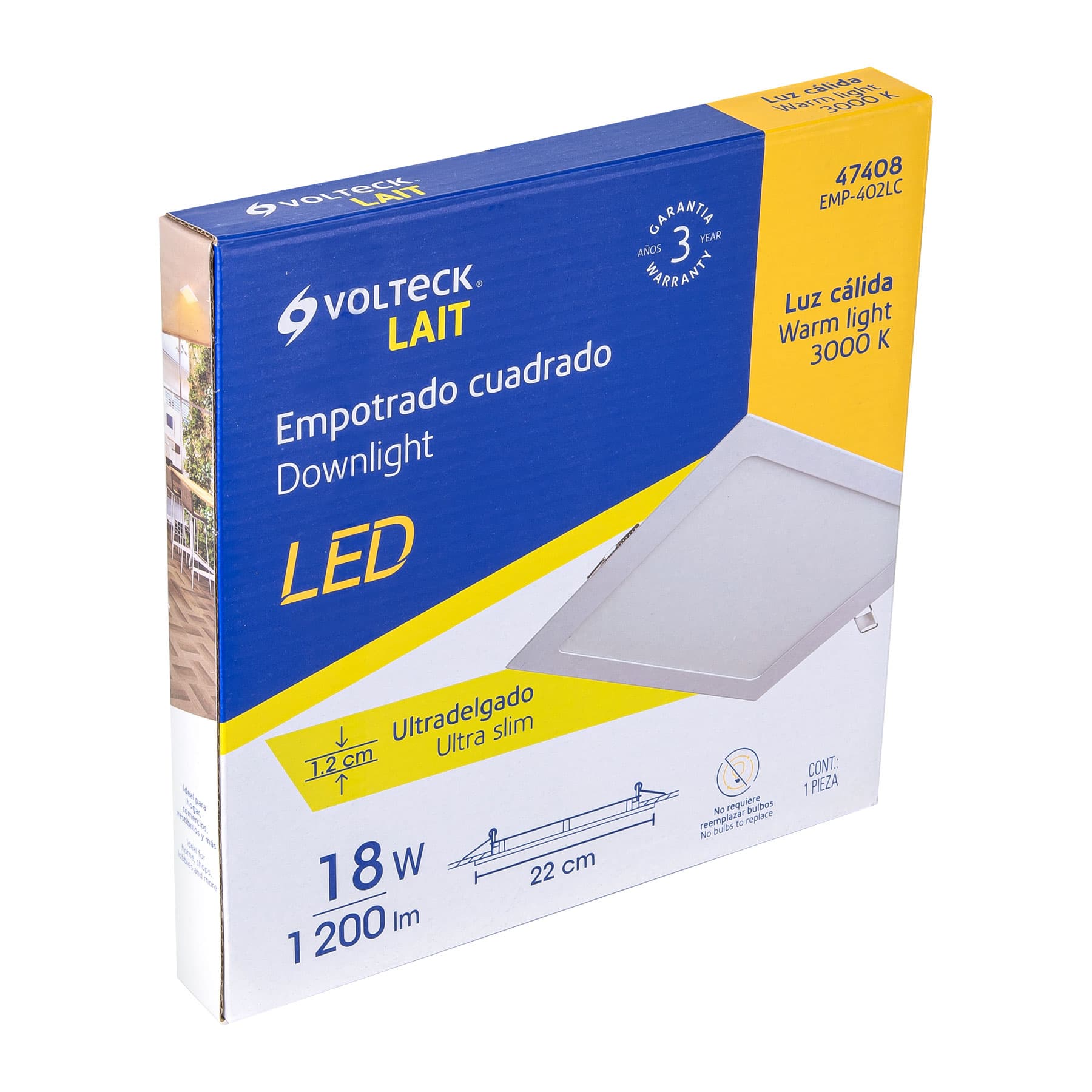 Luminario LED plafón 18W 3000K ultradelgado cuadrado VOLTECK