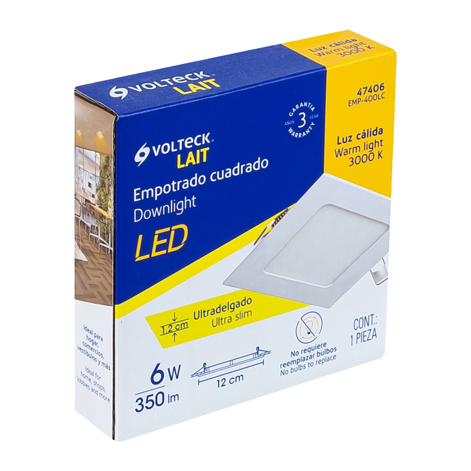 Luminario LED plafón 6W 3000K ultradelgado cuadrado VOLTECK