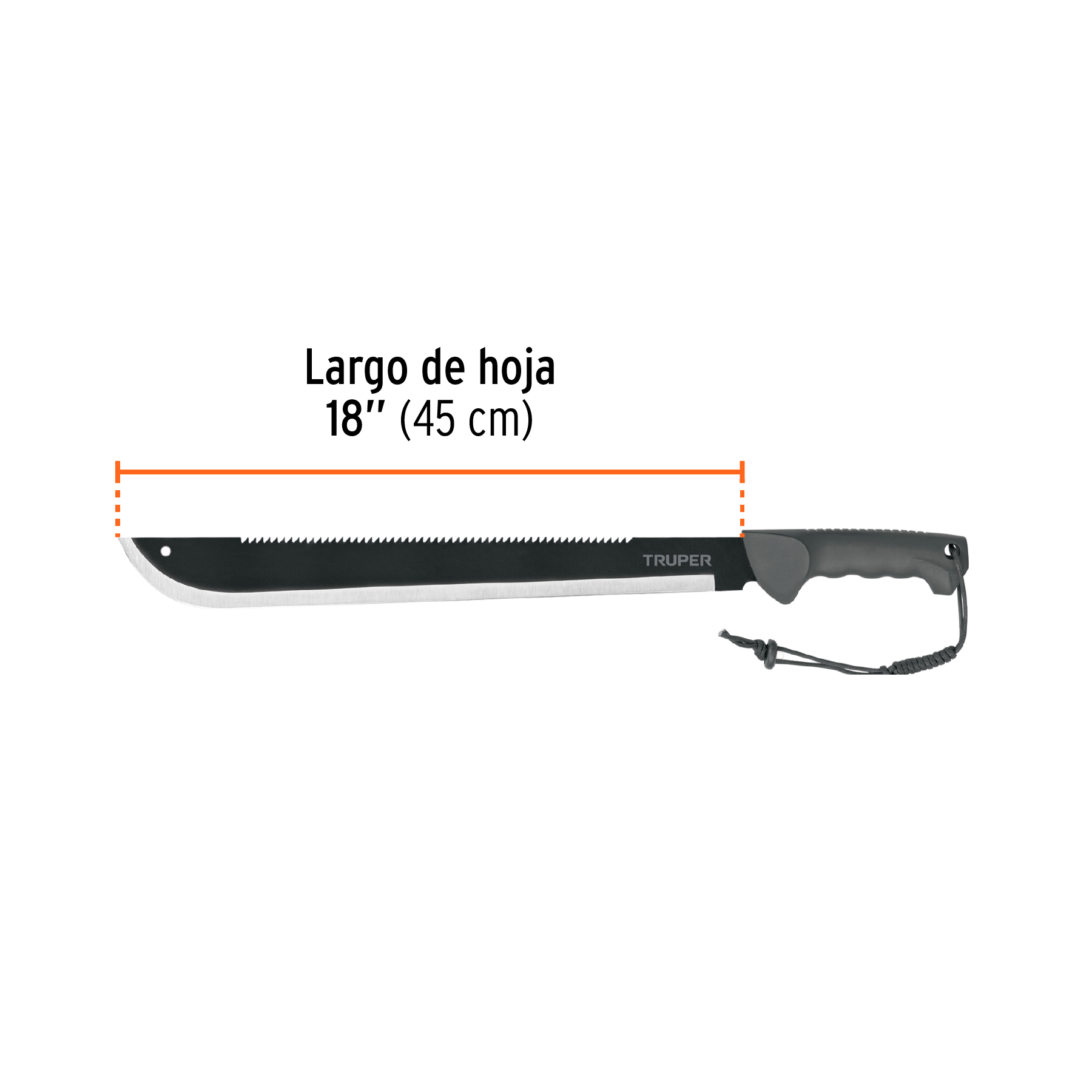 Machete doble filo 18′, cacha inyectada, con funda, TRUPER
