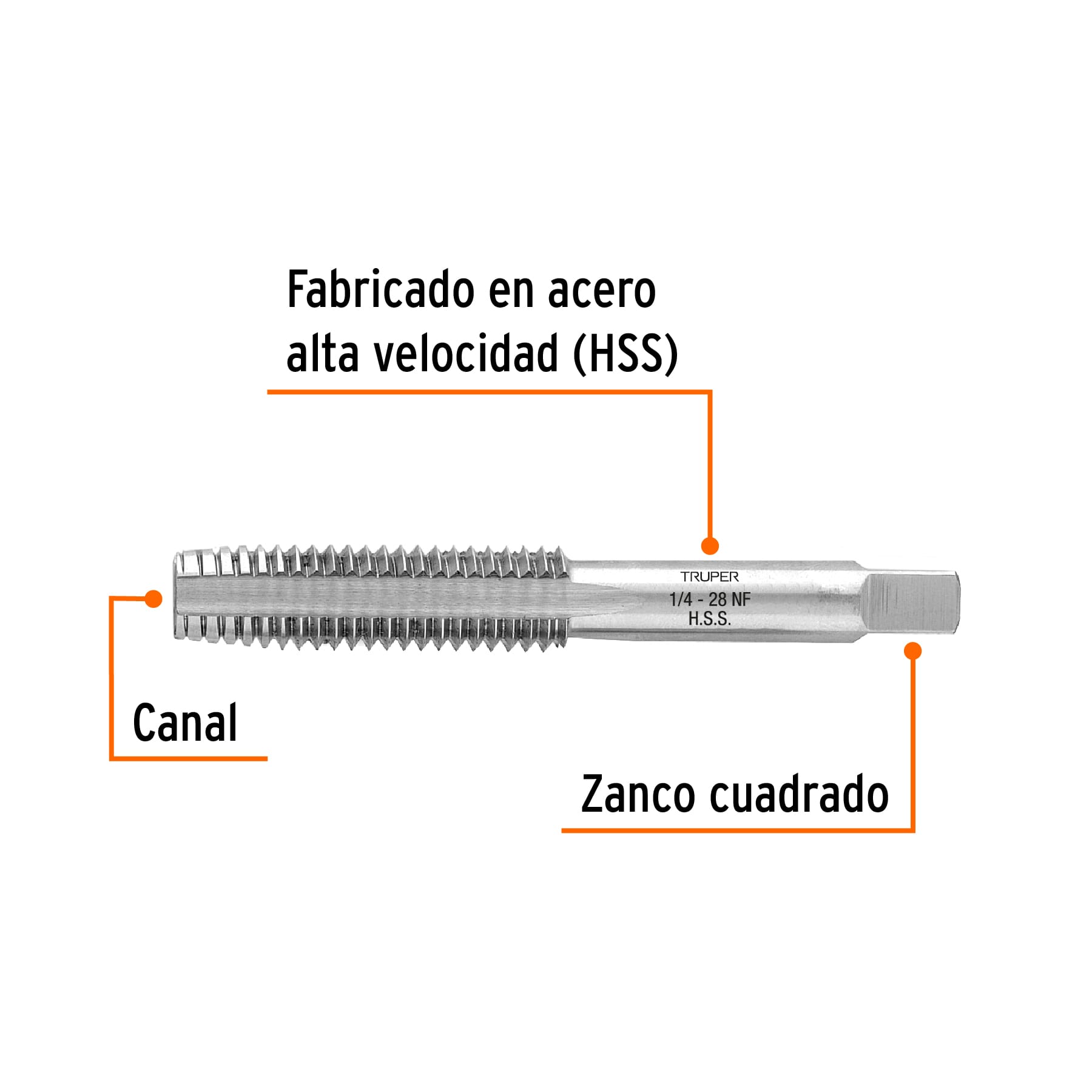 Machuelo semicónico 1/4′ x 28 cuerda fina, Truper
