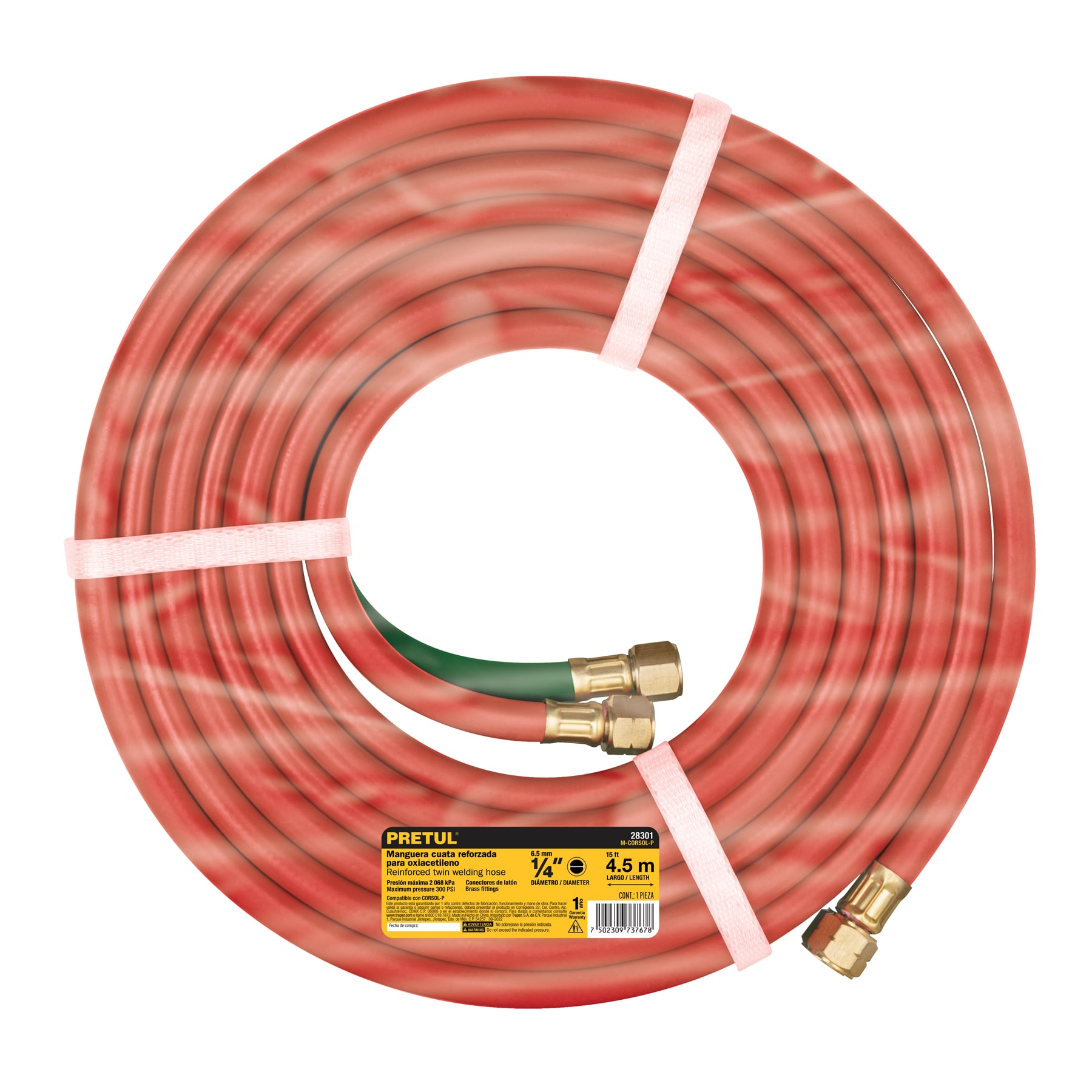 Manguera cuata reforzada de 4.5 m para oxiacetileno, PRETUL