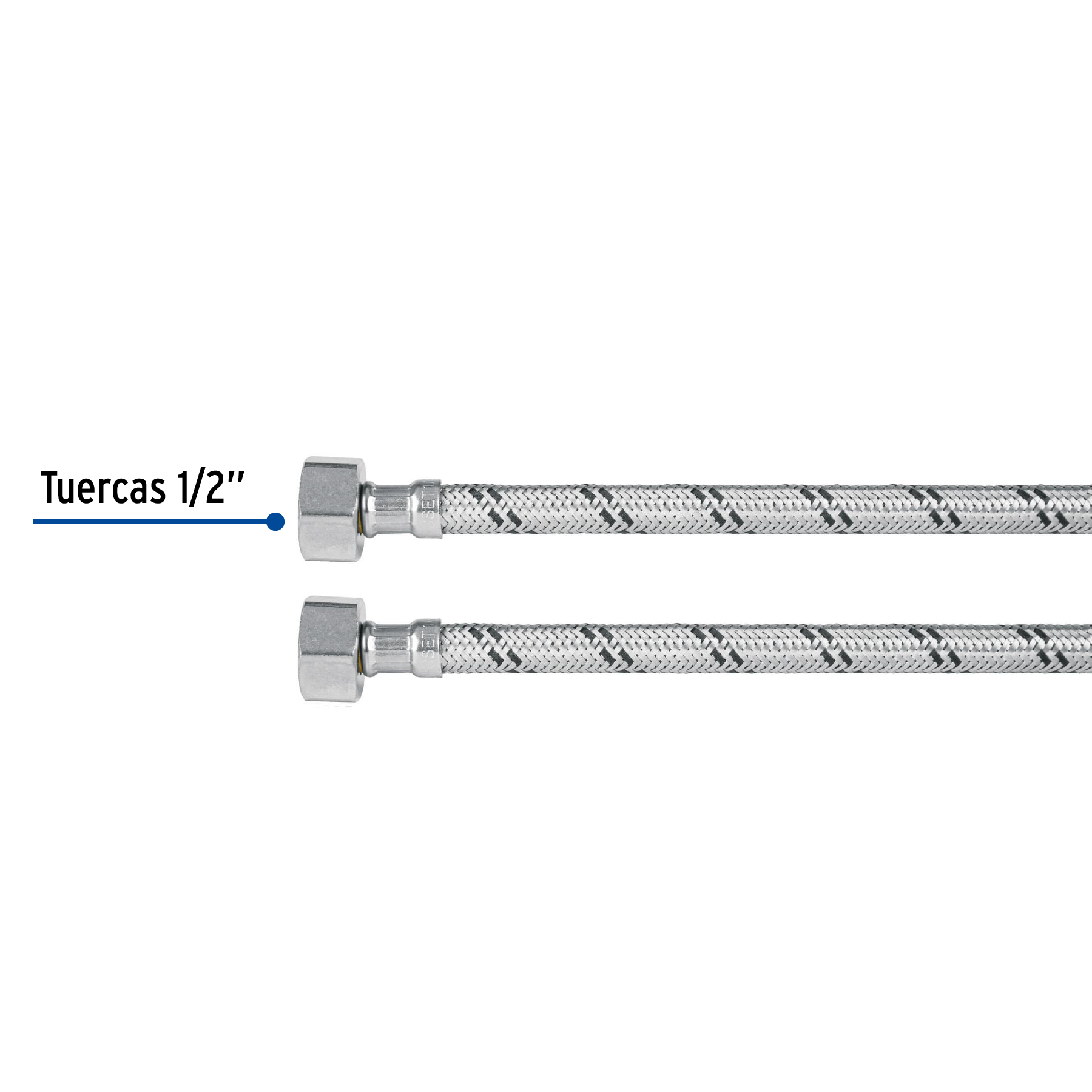 Manguera lavabo/fregadero, acero inox, 1/2′ x 1/2′, 55 cm