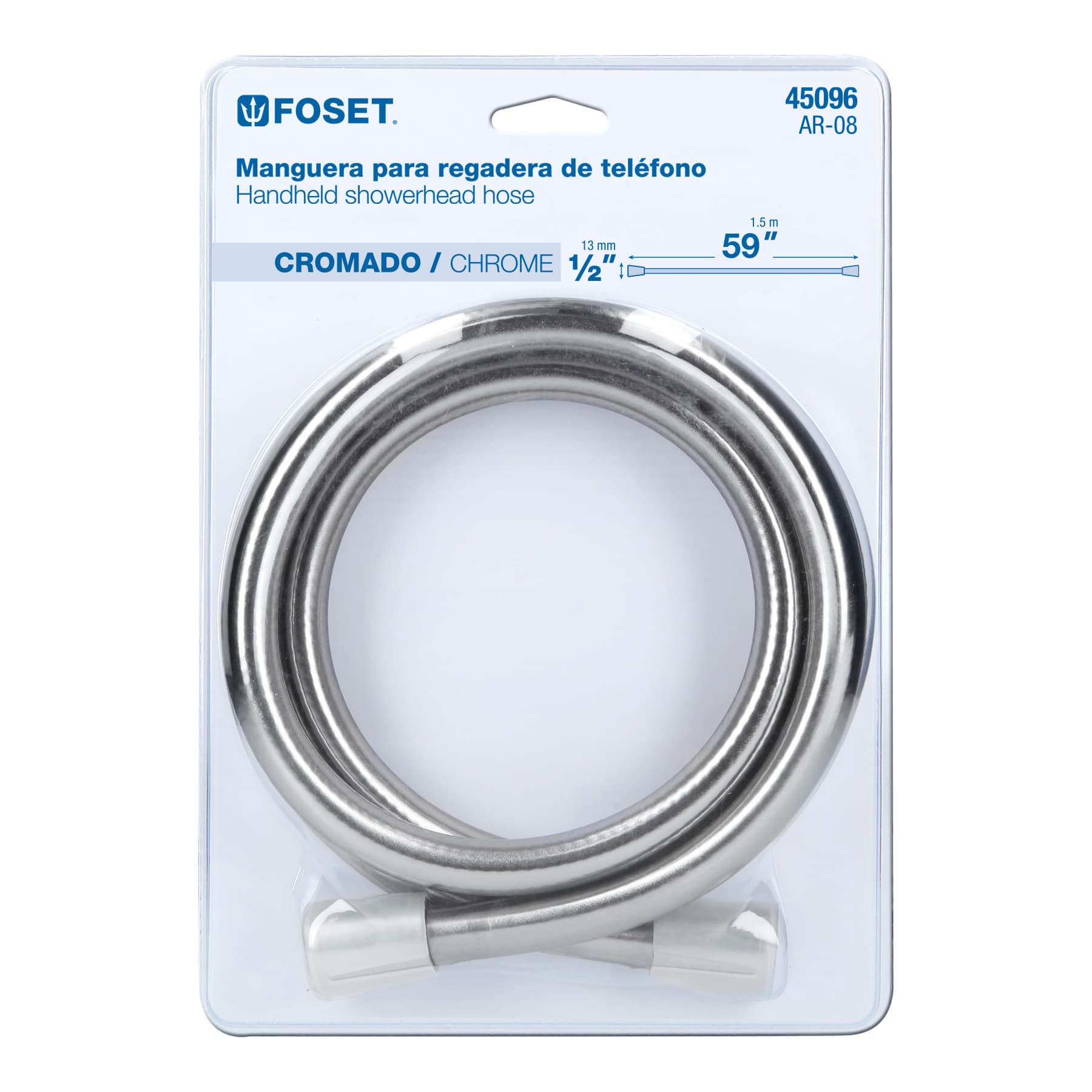 Manguera lisa para regadera, manual, cromada, Foset Riviera